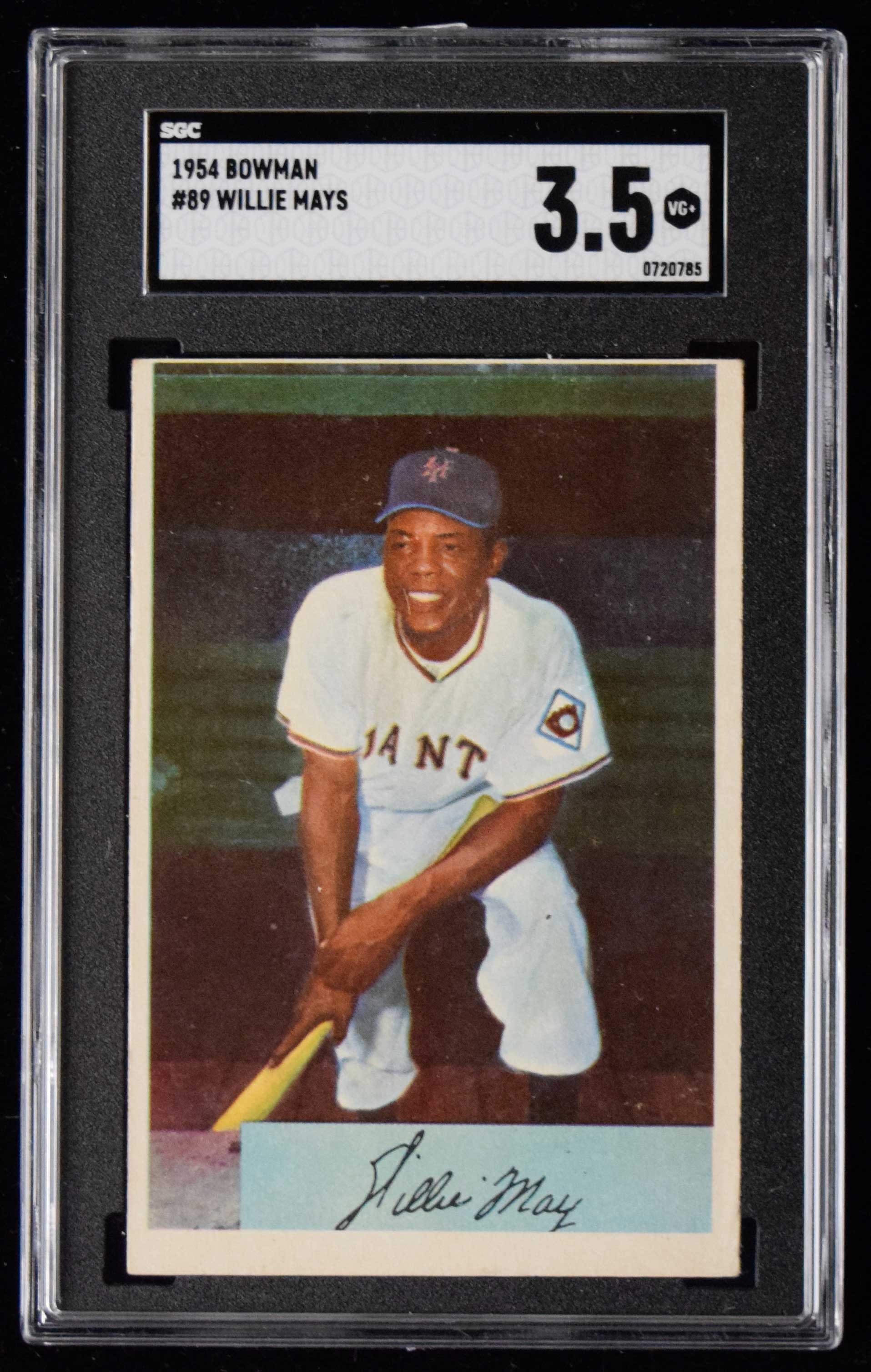 1954 Bowman #89 Willie Mays (SGC 3.5 VG+) Touch of light wear with centering (favoring the upper edge) that accounts for technical downgrade: SGC 3.5 VG+