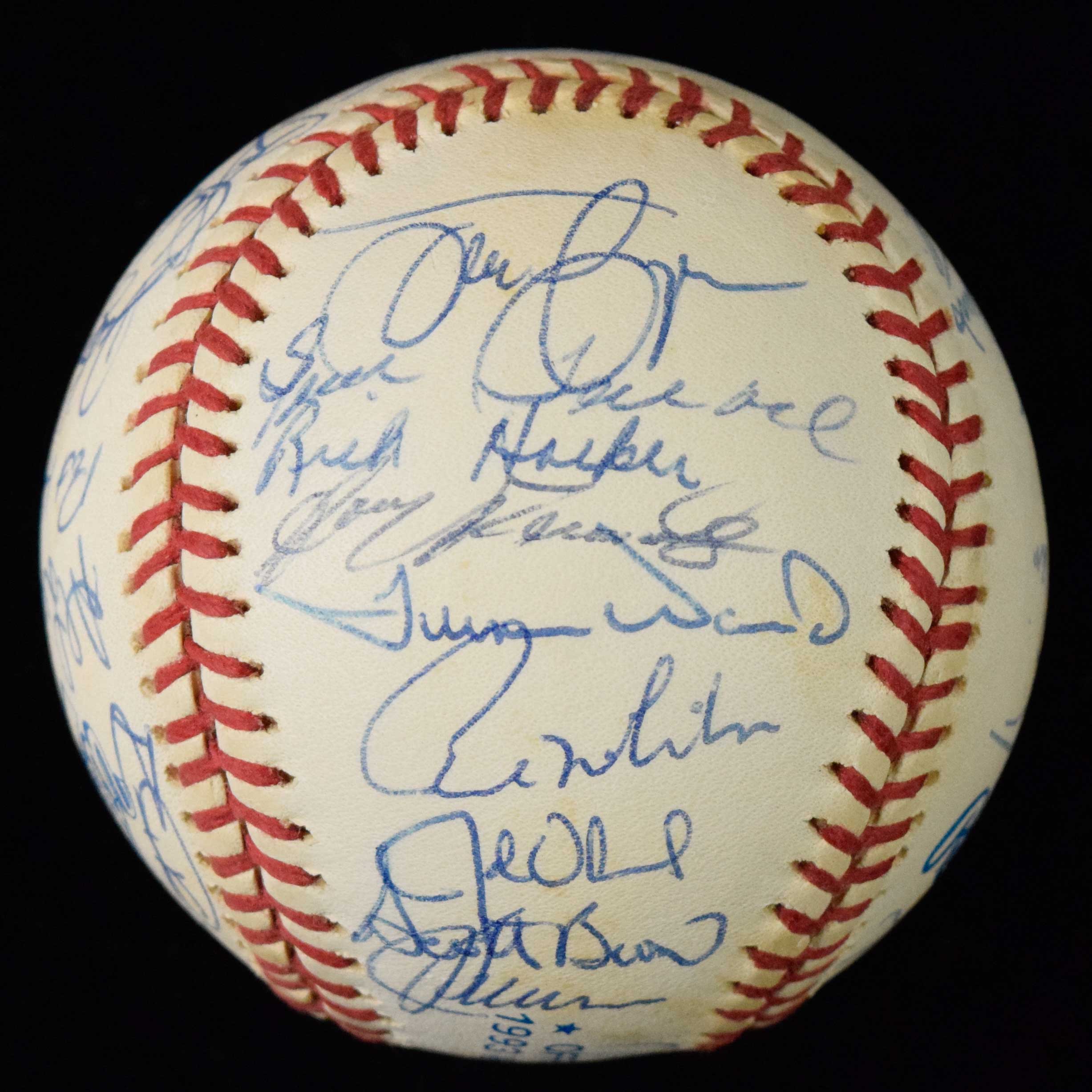 Description:1993 Toronto Blue Jays team signed World Series baseball (EX/MT). Rawlings official 1993 World Series ball signed by (32) members of the champion Blue Jays including Cito Gaston, Paul Molitor, Jack Morris, Roberto Alomar, Tony Fernandez, John Olerud, Pat Hentgen, Dave Stewart, Juan Guzman, Duane Ward, Dan Cox, Mark Eichhorn, Al Leiter, Ed Sprague, Pat Borders, Turner Ward, Darnell Coles, and others. Signatures rate 7 to 9/10 (avg 8/9) out of 10. Small areas of mostly minor toning: EX/MT