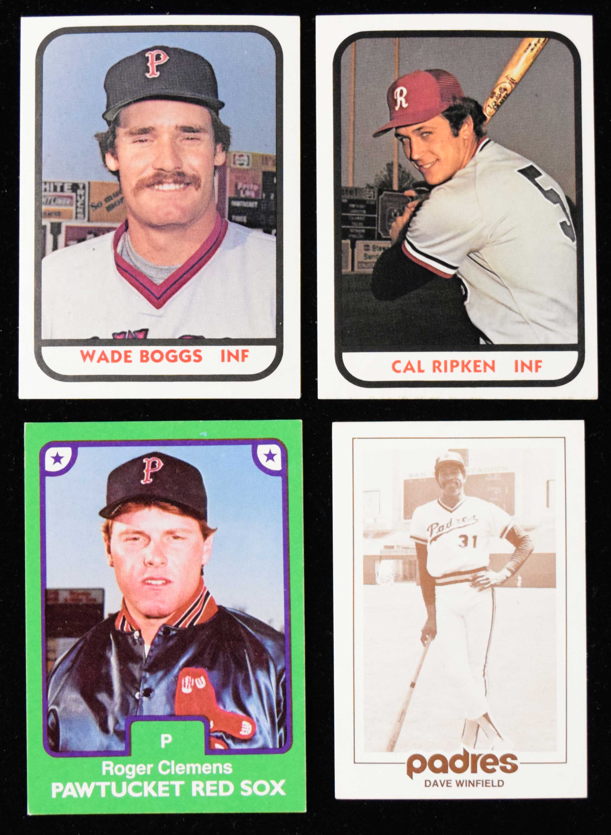 Description:Lot of (23) baseball card team sets from 1977-2007 including Boggs, Ripken, Clemens rookies (VG/EX-NM/MT). Highlights include San Diego Padres 1977 schedule set (type 1), 1981 TCMA Pawtucket Red Sox with #15 Wade Boggs (EX/MT), 1981 TCMA Rochester Red Wings with #15 Cal Ripken (EX/MT), 1984 TCMA Pawtucket Red Sox with #22 Roger Clemens (EX). Remainder are mostly from throughout the 1980s, with some from the 1990s-2000s mixed in. Various conditions throughout the lot. Most appear to average EX/MT-NM overall. Range: VG/EX-NM/MT
