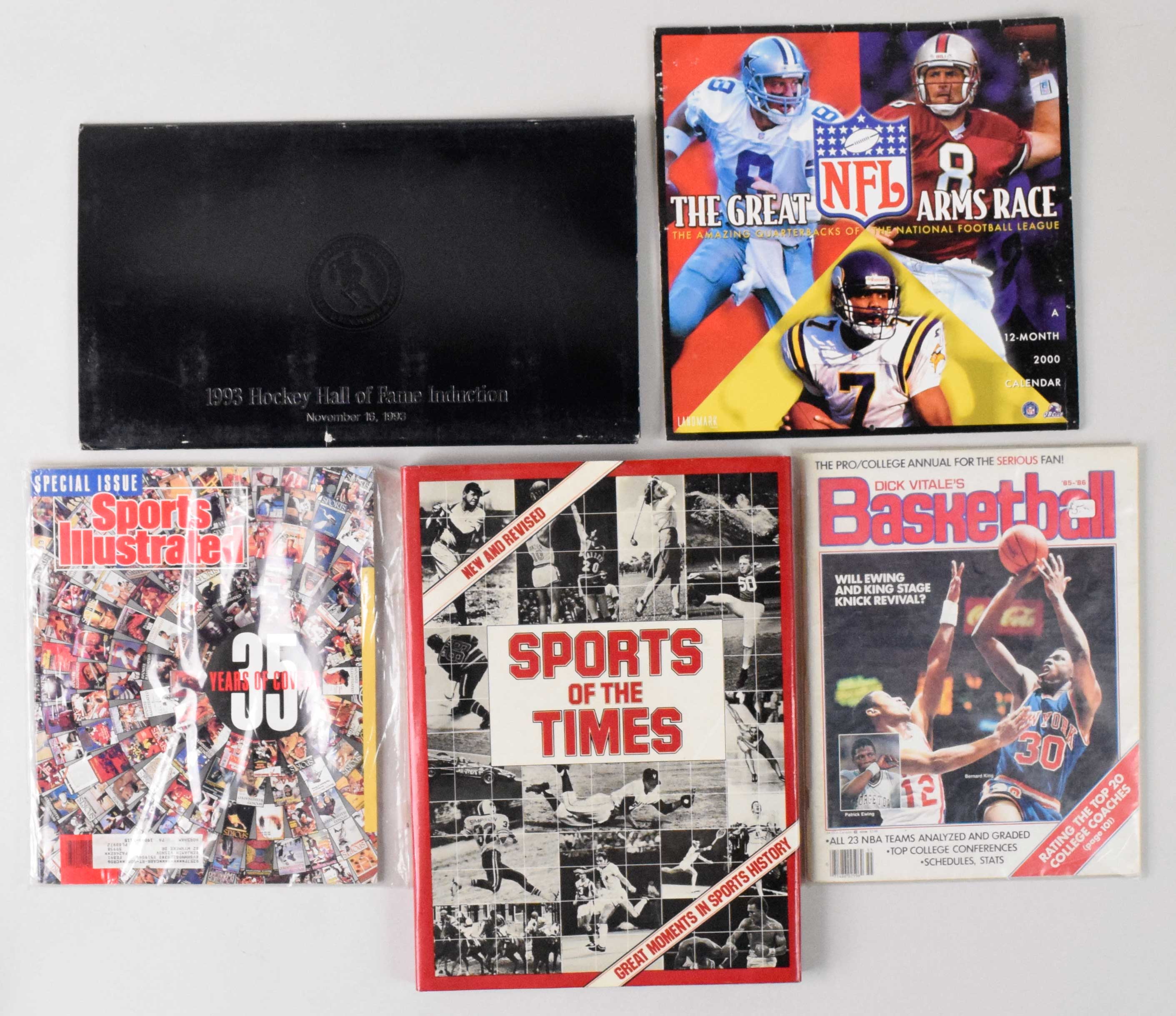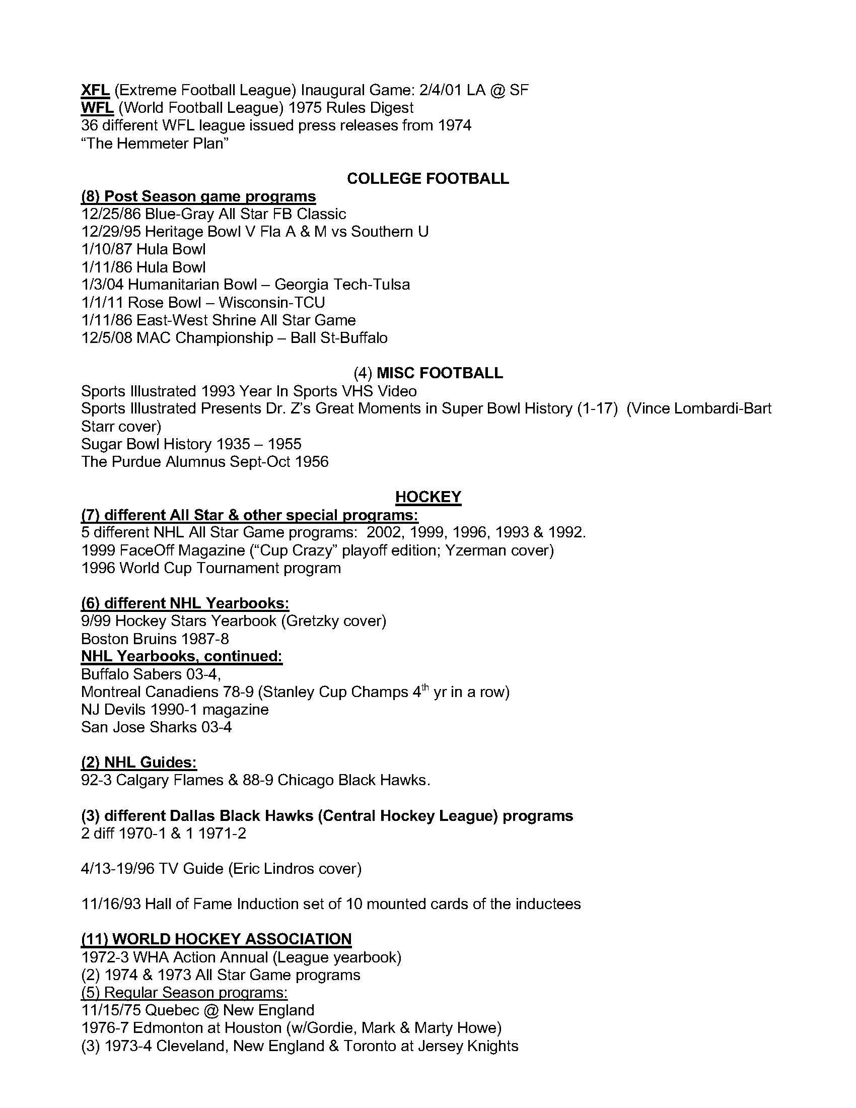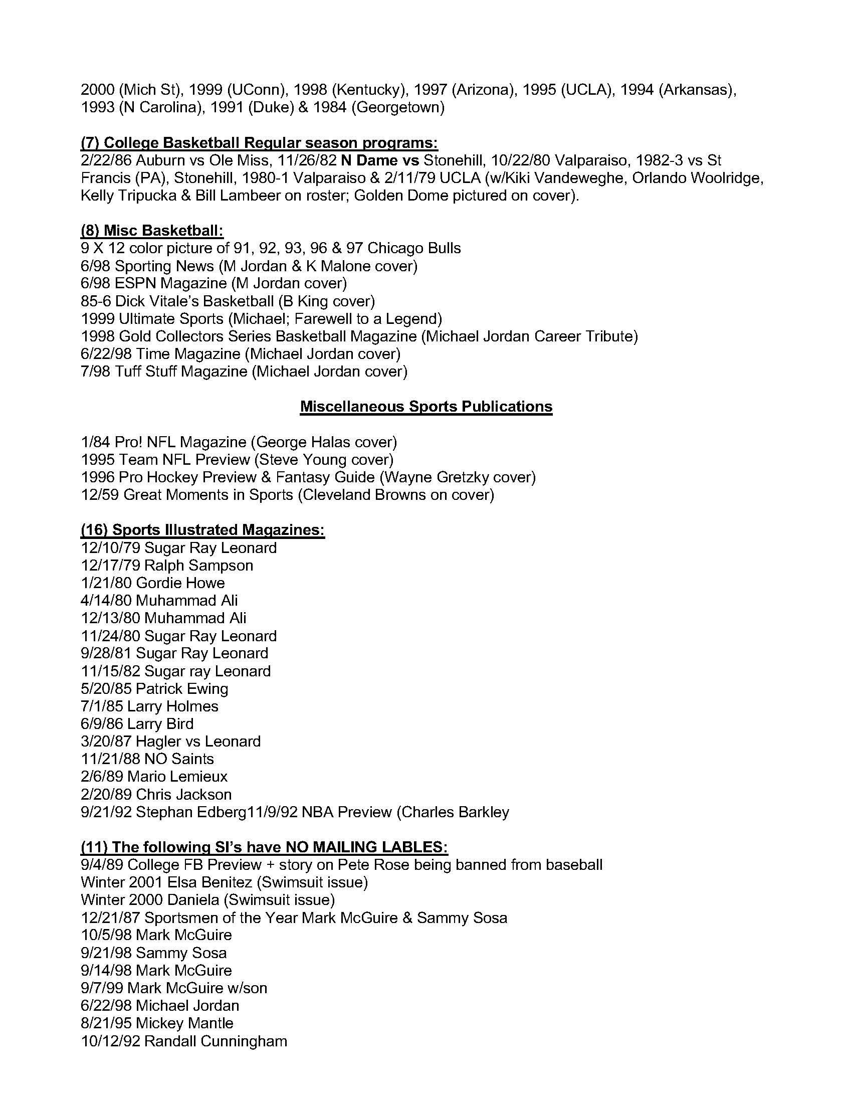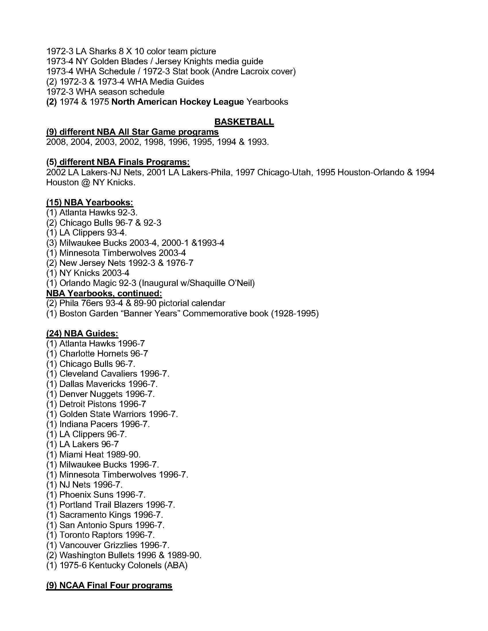 Description:Lot of (419) different Baseball, Football, Basketball and Hockey publications including post season and championship programs, yearbooks, guides, regular season programs and miscellaneous publications (VG/EX-MT) See Full List for details on the items. Includes (12) differet World Series programs between 1987-1993, (6) MLB All Star Game programs 1986-2011, (19) LCS programs 1982-2010, (12) Division Series programs 2007-2012, (88) MLB yearkbooks, (12) National Sports Collector Convention programs, (2) Phillies media guides 1983 and 1984, (6) Topps/Surf Baseball card books, (6) Minor league baseball scorecards and programs, (11) assorted baseball magazines, (9) Super Bowl Programs from 1981-2011, (2) SB Press/media Guides XXII and XVII, 2010 pro bowl program, 1989 Rams Eagles playoff program, (19) NFL yearbooks, (8) College postseaon program 1986-2008, (7) All Star and other special NHL programs, (2) NHL Gudies, (9) NBA ASG programs, (5) NBA Finals Programs 1994-2001, (15) NBA Yearbooks, (24) NBA Gudies, (9) NCAA Final Four programs, (7) College Basketbal regular season programs, (16) Sports Illustrated Magazines 1979-1992 and more. Most items are in EX-MT condition: VG/EX-MT