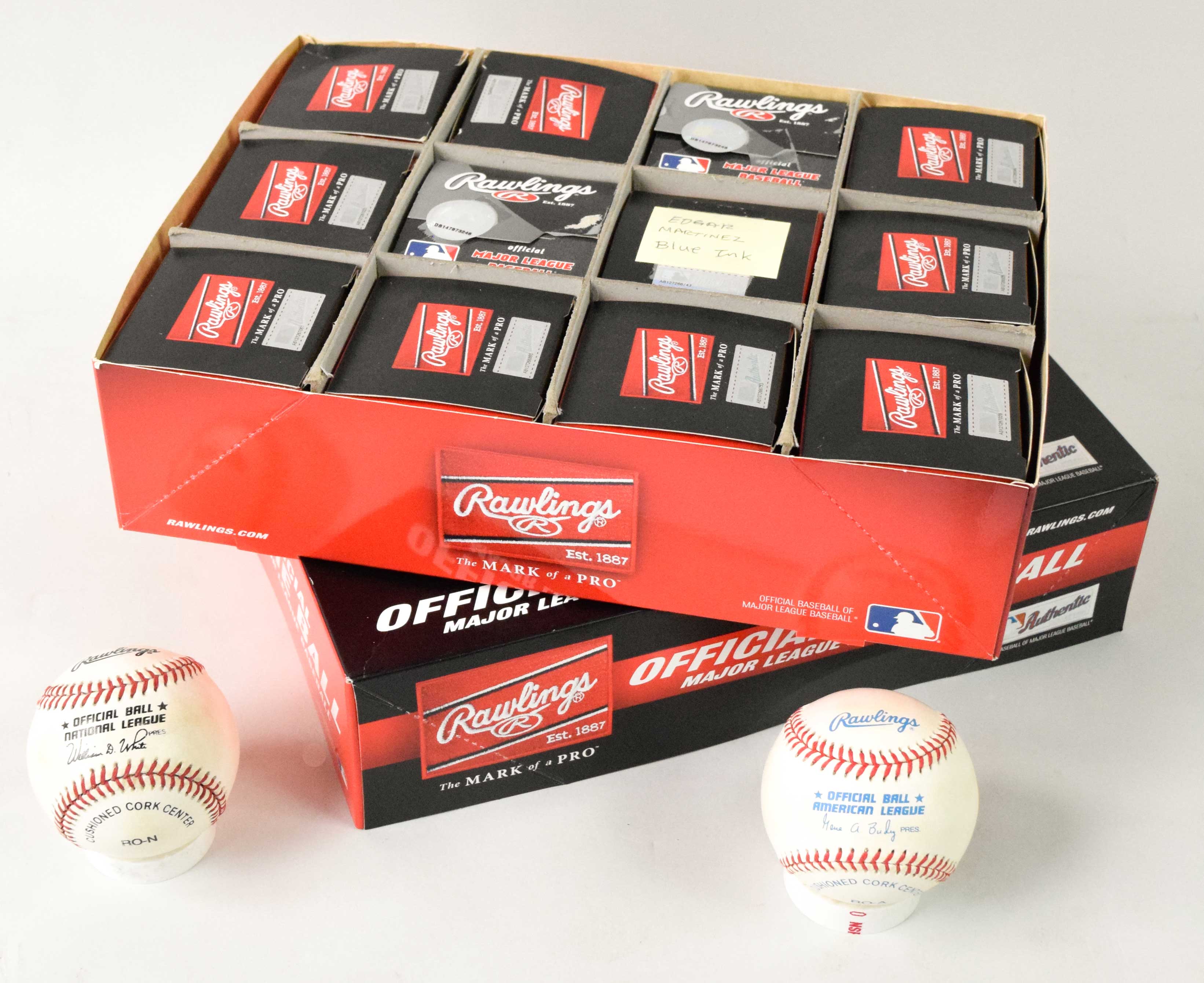 Description:Lot of (31) Rawlings Official National, American, and Major League baseballs (EX-NM) Includes (5) L.Coleman ONL balls; (2) W.White ONL balls; (7) B.Giamatti ONL balls; (5) G.Budig OAL balls; (2) B.Selig OML balls; and (10) R.Manfred OML balls. All unused however there are varying degrees of light toning and/or some minor surface wear to stampings which effects the earlier OAL and ONL balls: EX-NM