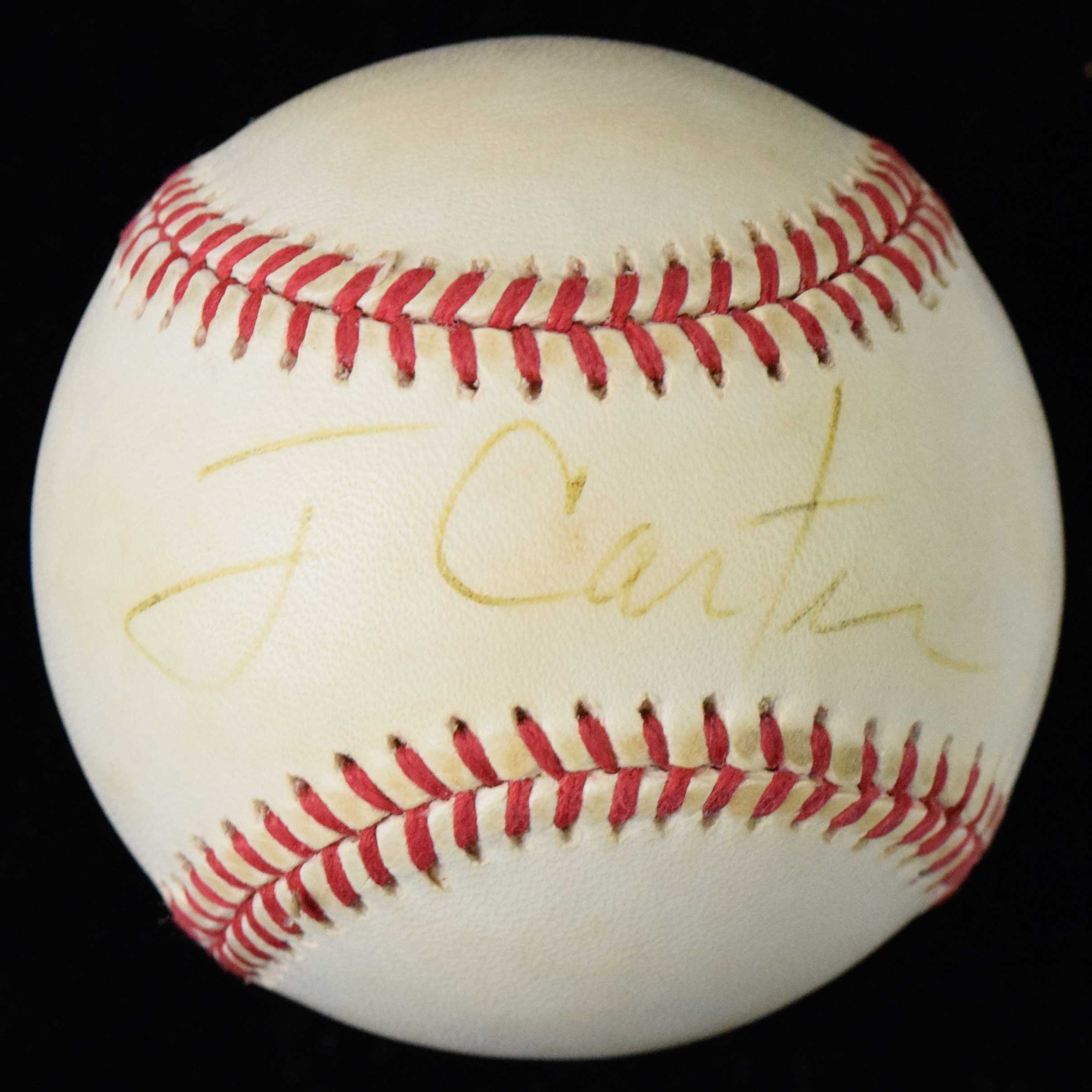 Jimmy Carter single signed baseball (VG) Rawlings L.Coleman ONL ball has been signed in ink rating approx. 5/6-6 out of 10. Light toning: VG