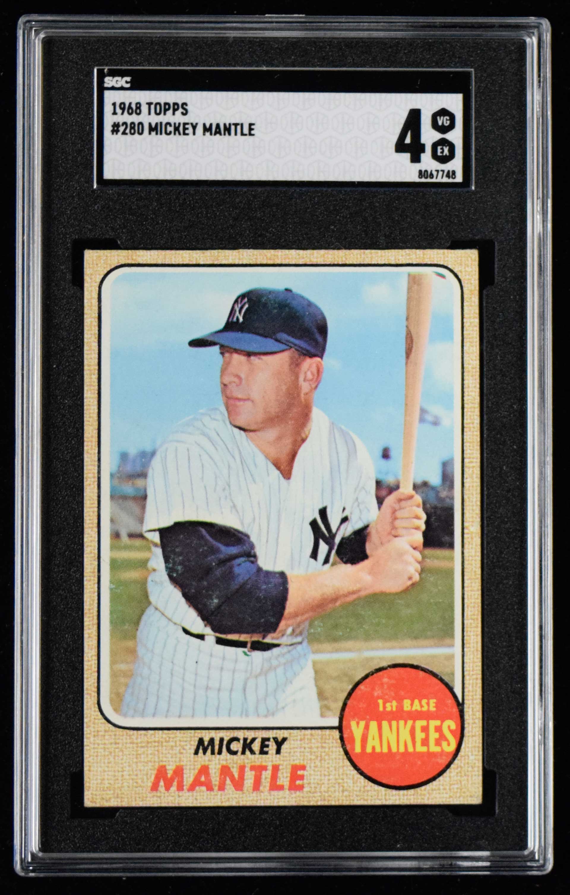 1968 Topps #280 Mickey Mantle (SGC 4 VG EX) Well centered with a touch of light wear: SGC 4 VG EX