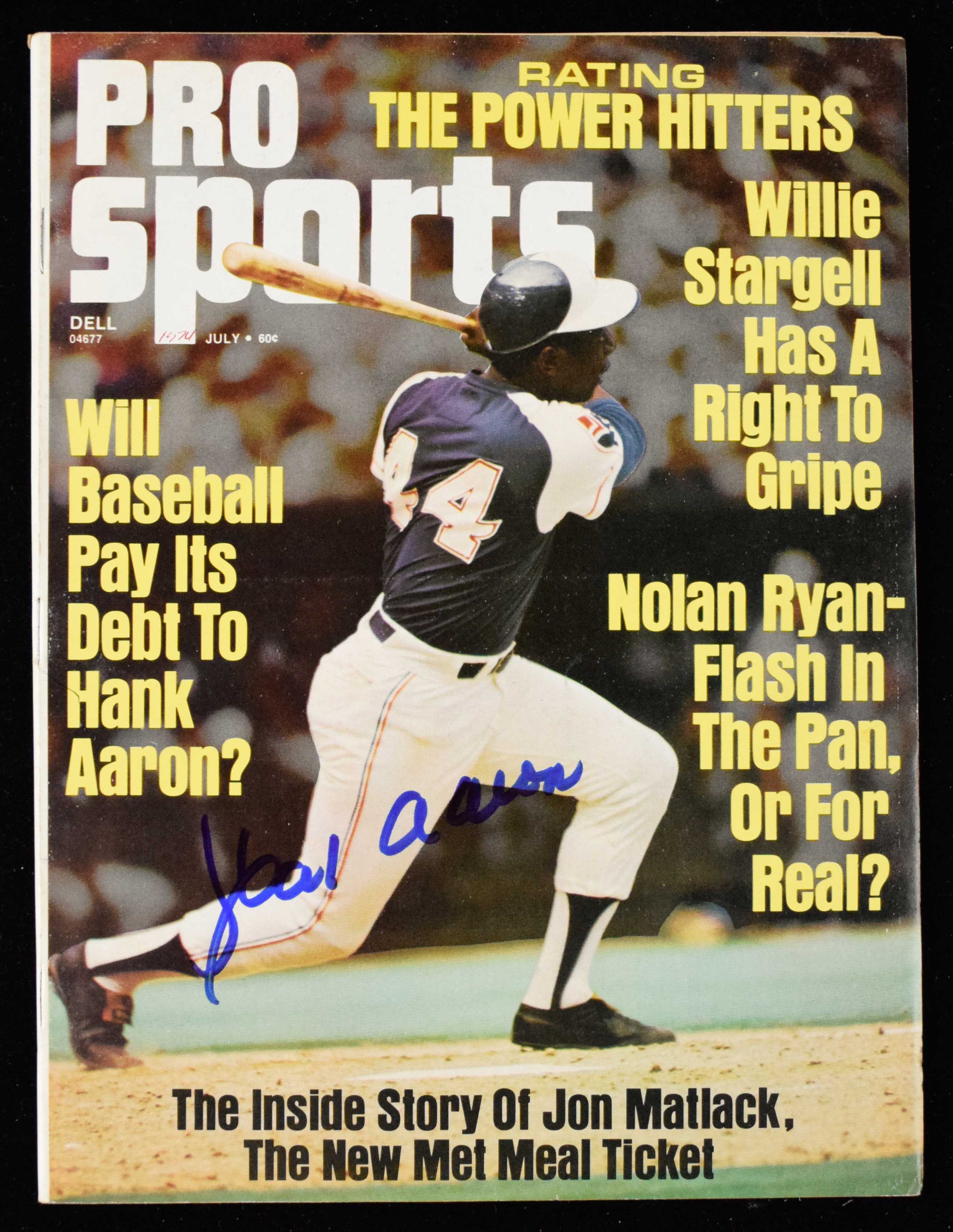Description:Hank Aaron autographed 1974 Pro Sports Magazine (Sig. NM, Mag. EX) Signed in marker rating 9/10 out of 10. Light handling wear and small ink mark on cover: Sig. NM, Mag. EX