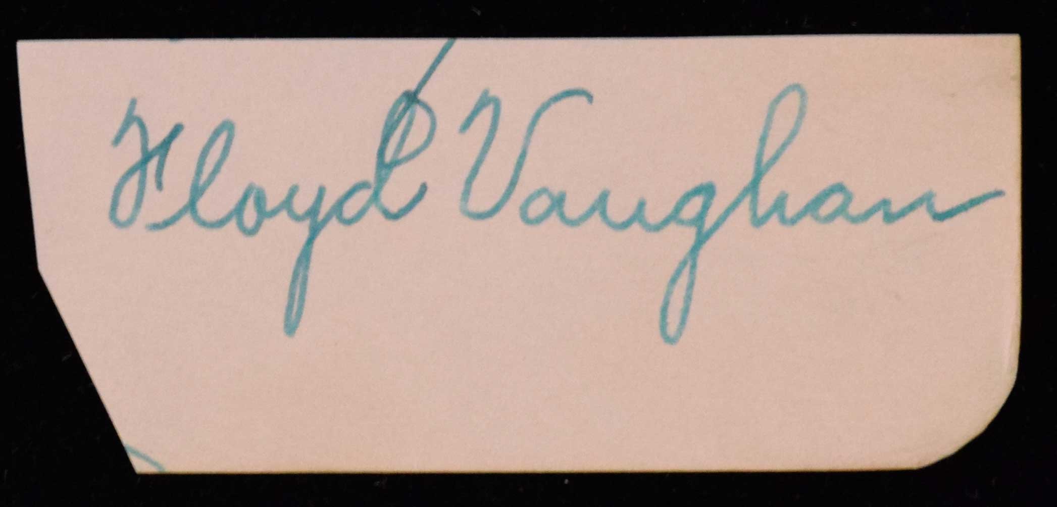 Arky Vaughan autograph (NM) Fountain pen signature rating 9 out of 10 appears on small 1"x2.5" section clipped from an album page: NM
