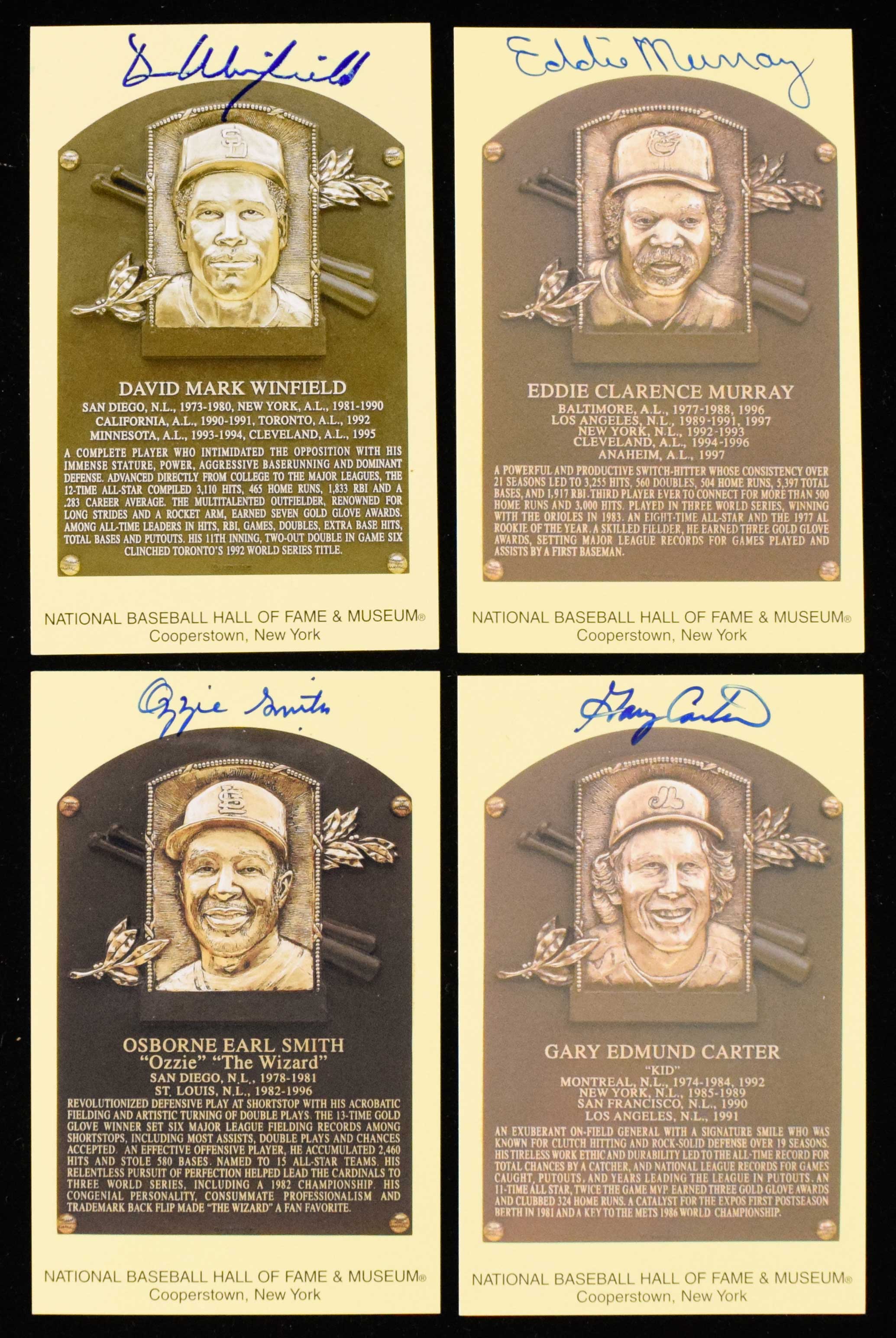 Description:Lot of (10) signed Yellow Hall of Fame postcards (NM) Includes Gary Carter, Bruce Sutter, Eddie Murray, Dave Winfield, Dick Williams, Ozzie Smith, Doug Harvey, Dennis Eckersley, Whitey Herzog, and Andre Dawson. Marker signatures rate 9 to 9/10 out of 10: NM