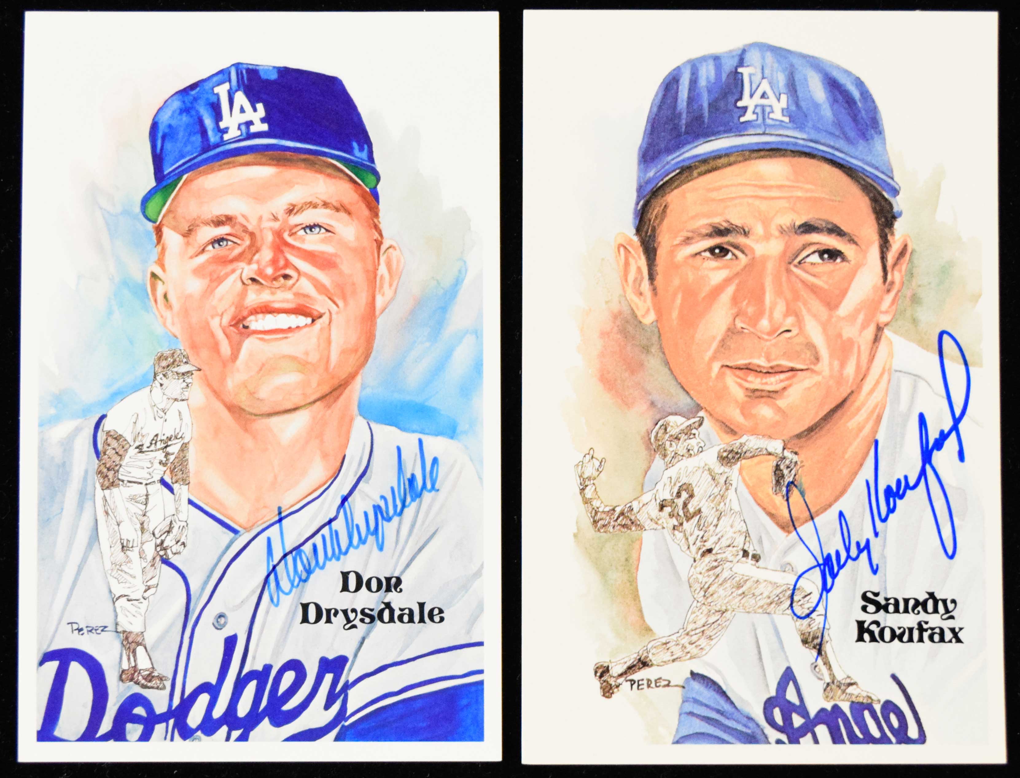 Sandy Koufax and Don Drysdale autographed Perez-Steele postcards (NM) Each signed in marker rating 9 out of 10: NM