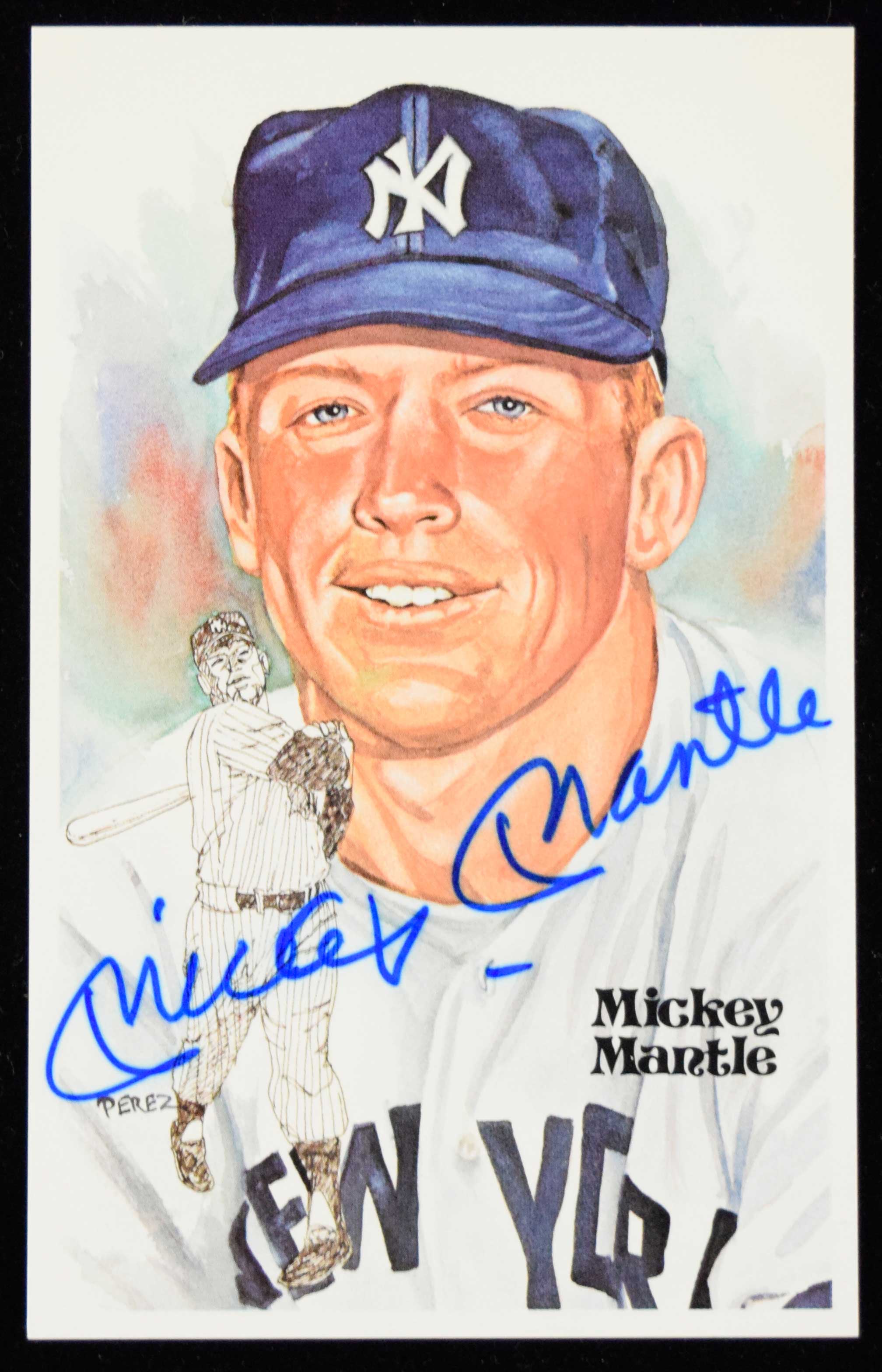 Mickey Mantle signed Perez-Steele postcard (NM) Signed in marker rating 8 out of 10: NM