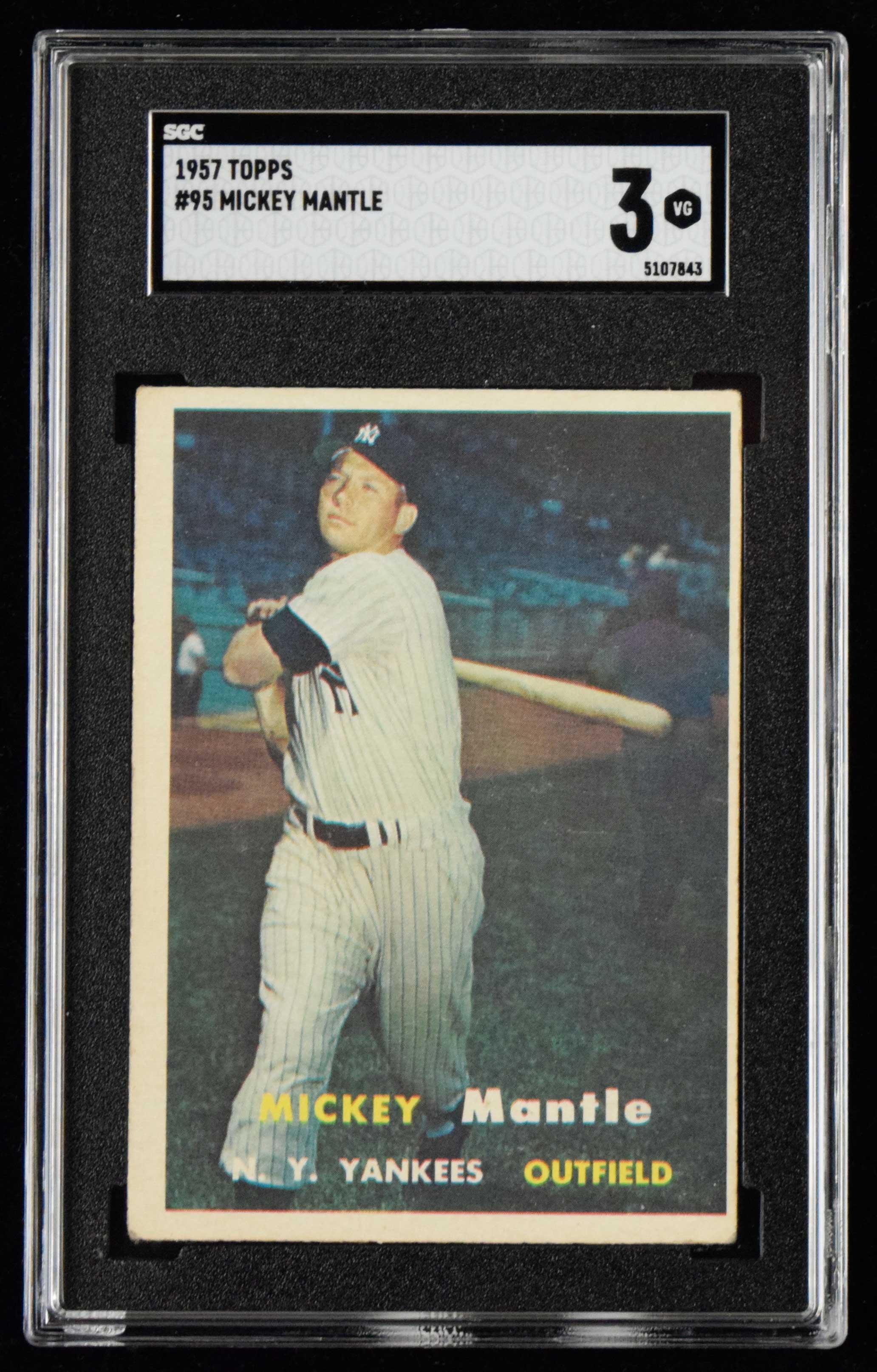 1957 Topps #95 Mickey Mantle (SGC 3 VG) Well registered image and a touch of light wear: SGC 3 VG ($400-$600)