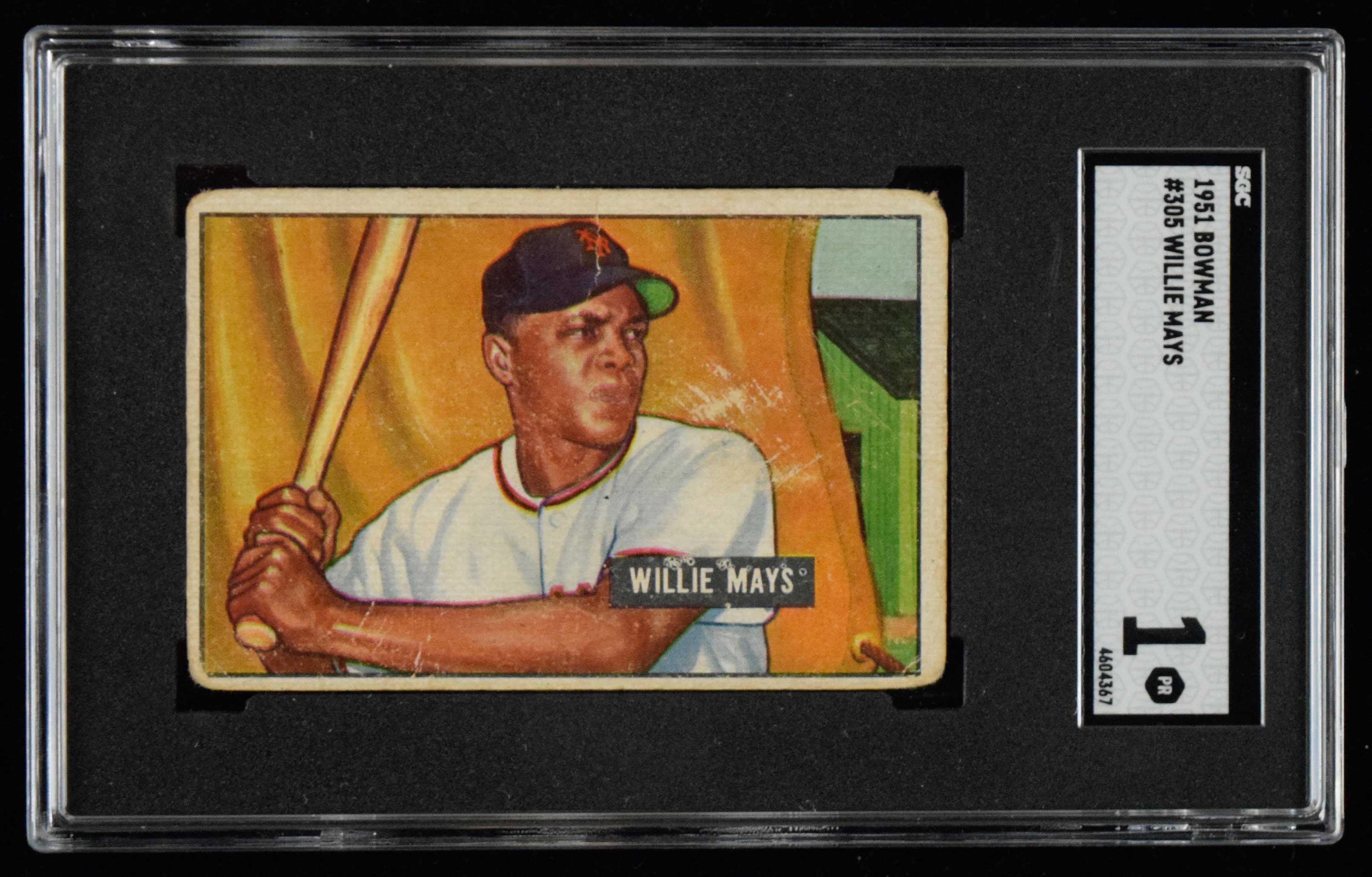 1951 Bowman #305 Willie Mays Rookie (SGC 1 PR) Key Rookie card displays well despite grade consistent wear throughout: SGC 1 PR ($2,000-$3,000)