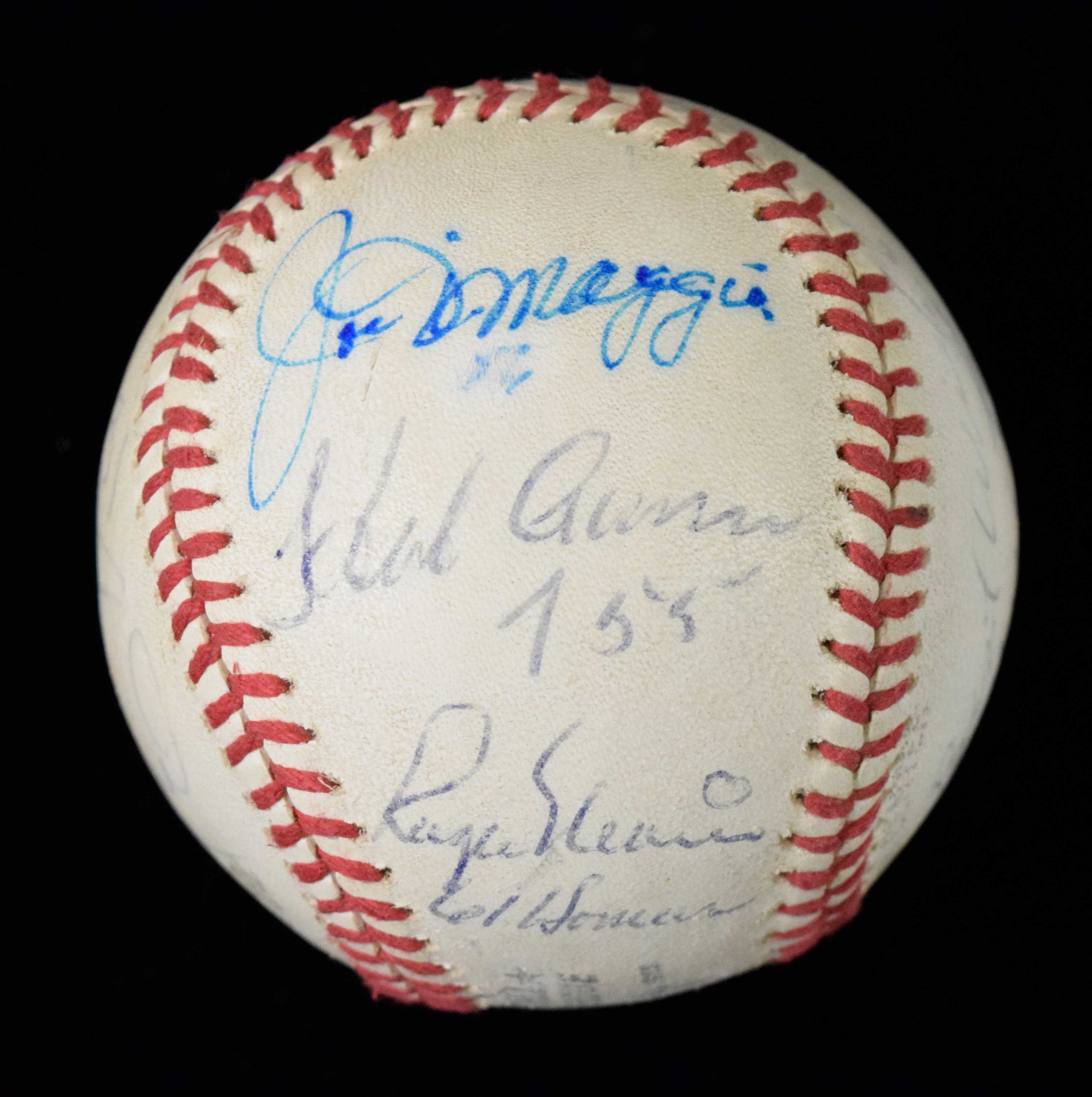 Description:Rare Roger Maris "61 Homers" inscribed autograph on Hall of Famers and stars ball (all with notable achievement inscription) (VG) Rawlings C.Feeney ONL baseball has been signed by (8) notable players, each of whom has added an inscription related to a notable career achievement. Includes Maris (with rare "61 Homers" inscription), Joe DiMaggio ("56"), Hank Aaron ("755"), Pete Rose ("44 Games"), Warren Spahn ("363 Wins"), Stan Musial ("331"), Lou Brock ("938 S.B."), and Eddie Mathews ("512 HRs"). Signatures are done in ink/marker rating from 5/6 to 7/8 out of 10. Ball has light discoloration and moderate surface wear throughout: VG ($500-$1,000)