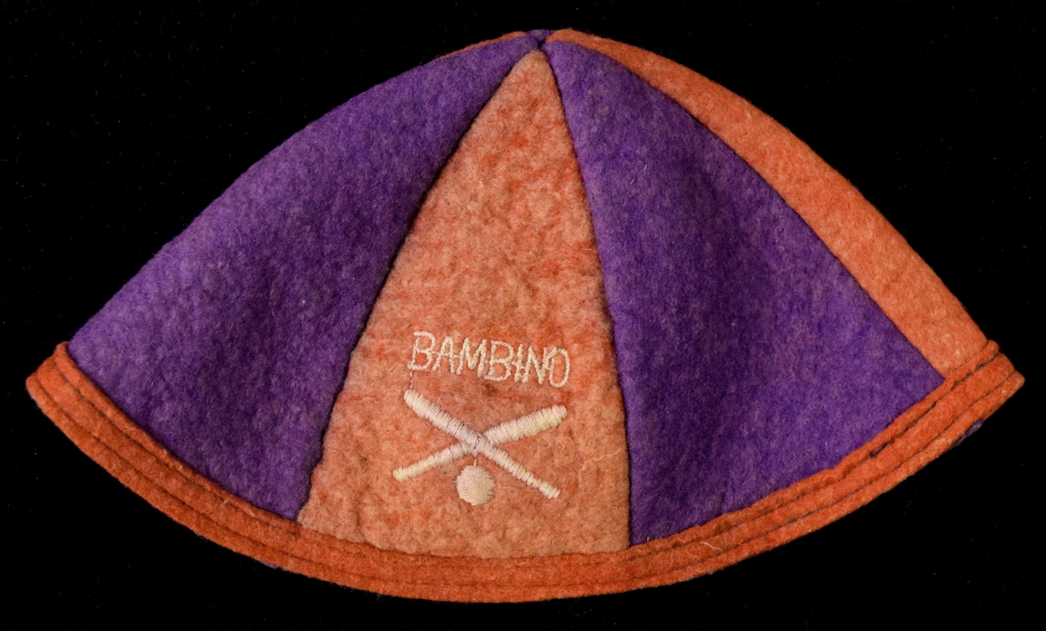 Description:Babe Ruth vintage "Bambino" Quaker Oats premium hat, c.mid 1930s (EX/MT-NM). Felt beanie style hat with embroidered BAMBINO logo. Minimal wear, with some very minor discoloration: EX/MT-NM