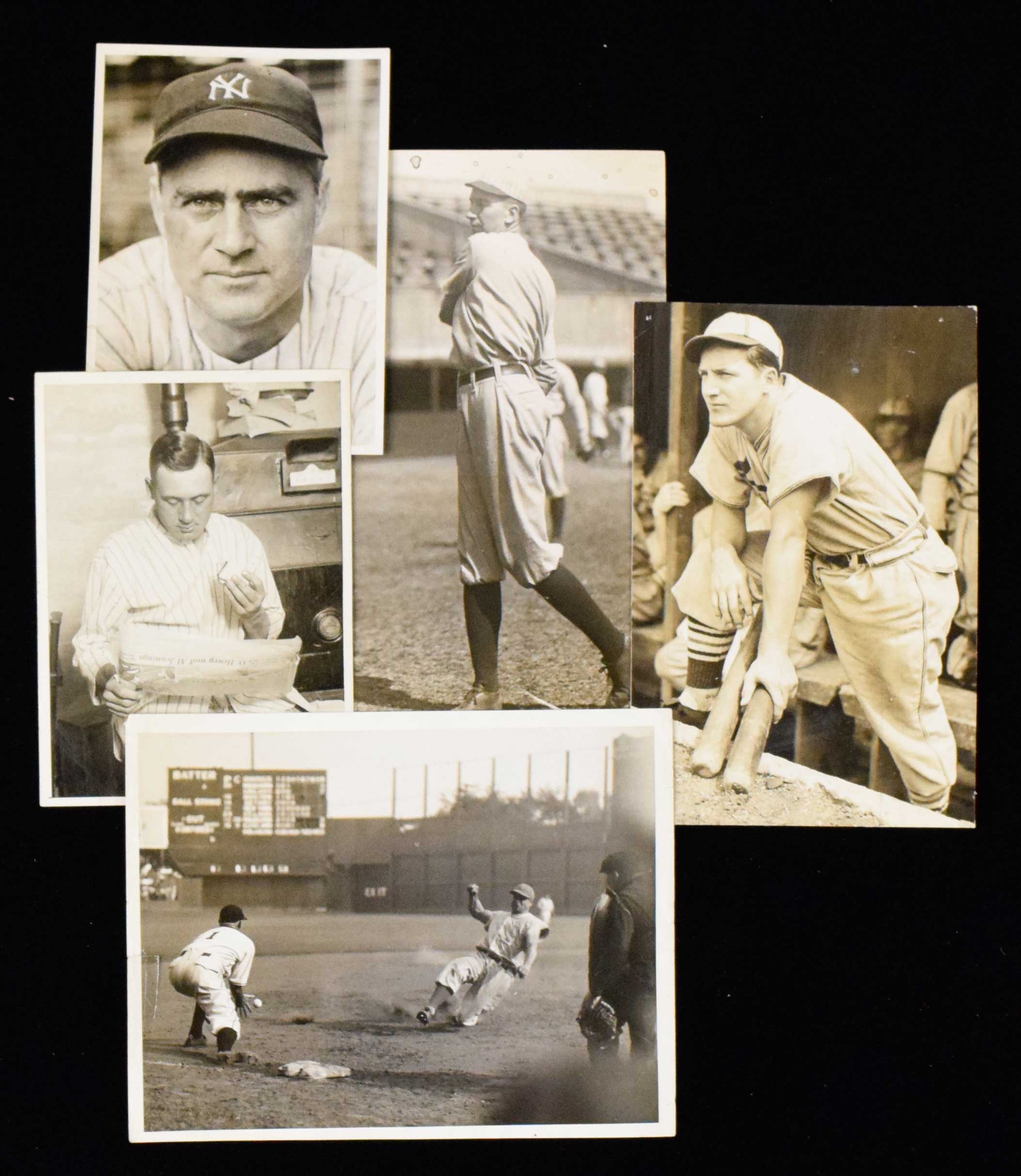Description:Lot of (10) c.1920s-30s Hall of Famer photographs (GD-EX) Nice variety of images with subjects including Jimmie Foxx (game action image sliding into base), Joe Medwick, Eppa Rixey, Chick Hafey, Edd Roush (street clothes), Bill Terry, Earle Combs, Joe MCCarthy, Frank Frisch, and Connie Mack. All have some sort of period c.1920s-30s marker and/or date stamp on back (with the exception of Combs). Varying degrees/types of wear throughout: GD-EX