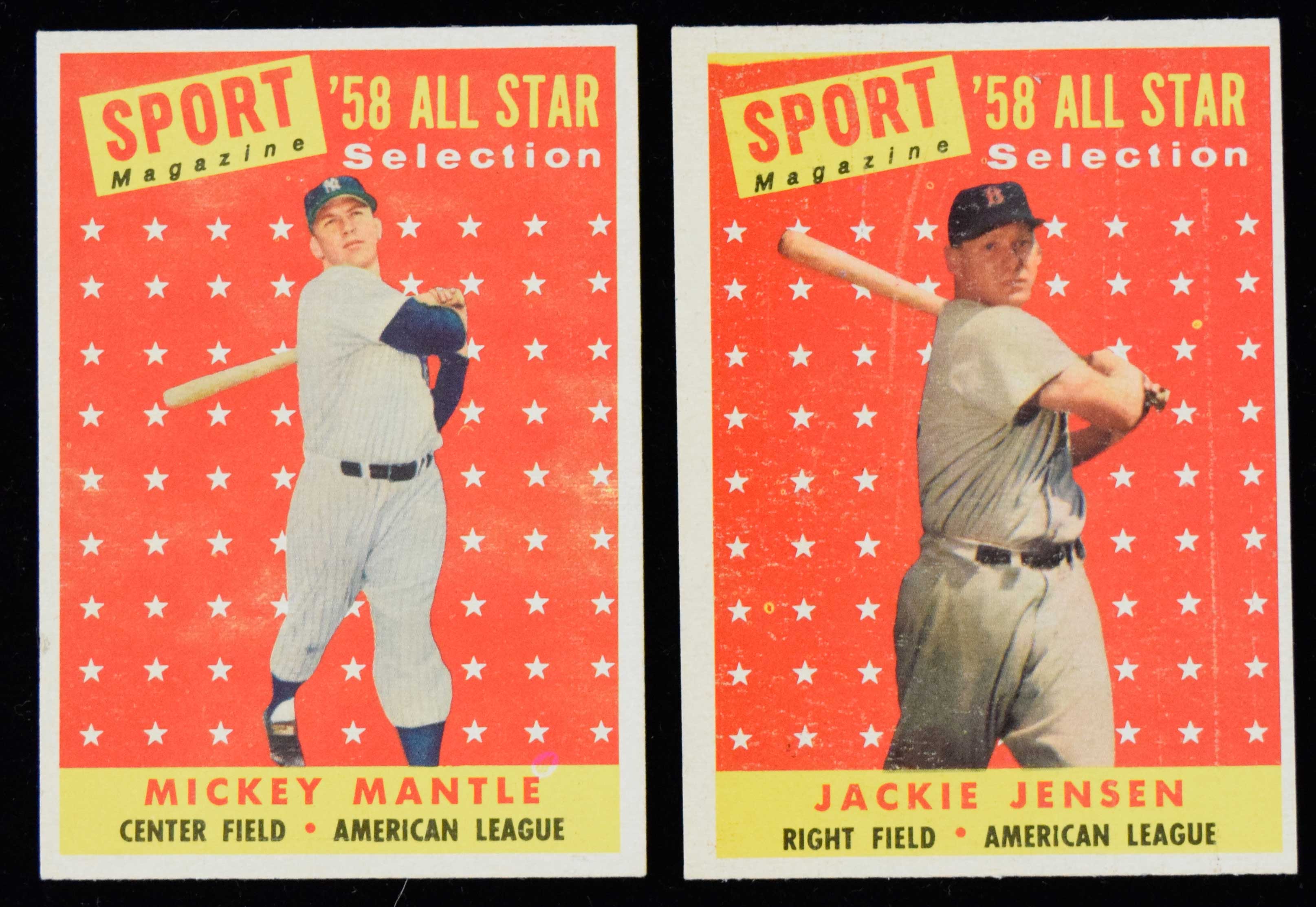 1958 Topps #487 Mickey Mantle and 489 Jackie Jensen (EX-EX/MT) Little mentionable wear: EX-EX/MT
