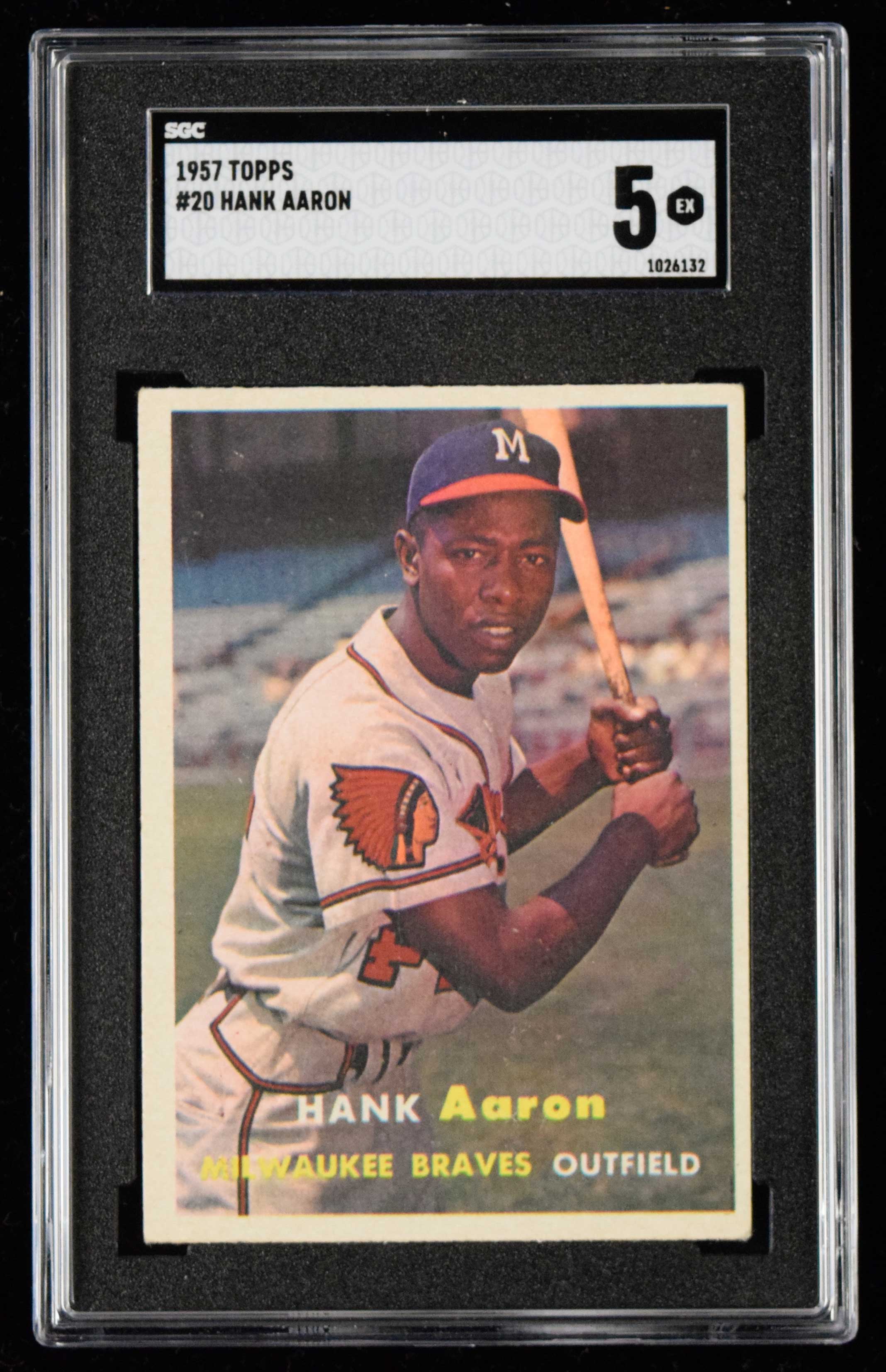 1957 Topps #20 Hank Aaron (SGC 5 EX) Crisp registration and the slightest touch to corners: SGC 5 EX
