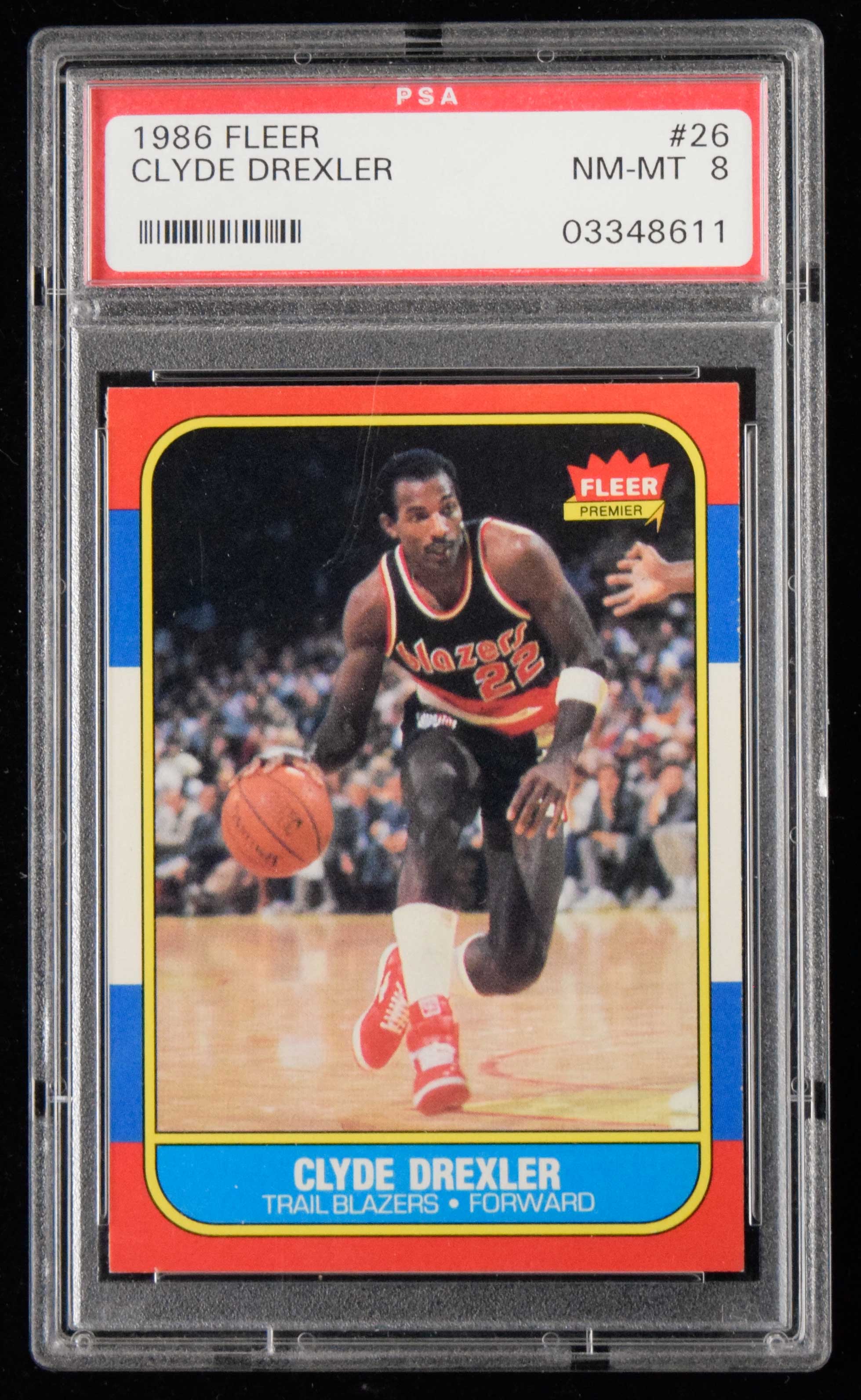 1986 Fleer #26 Clyde Drexler Rookie (PSA NM-MT 8) No mentionable wear: PSA NM-MT 8