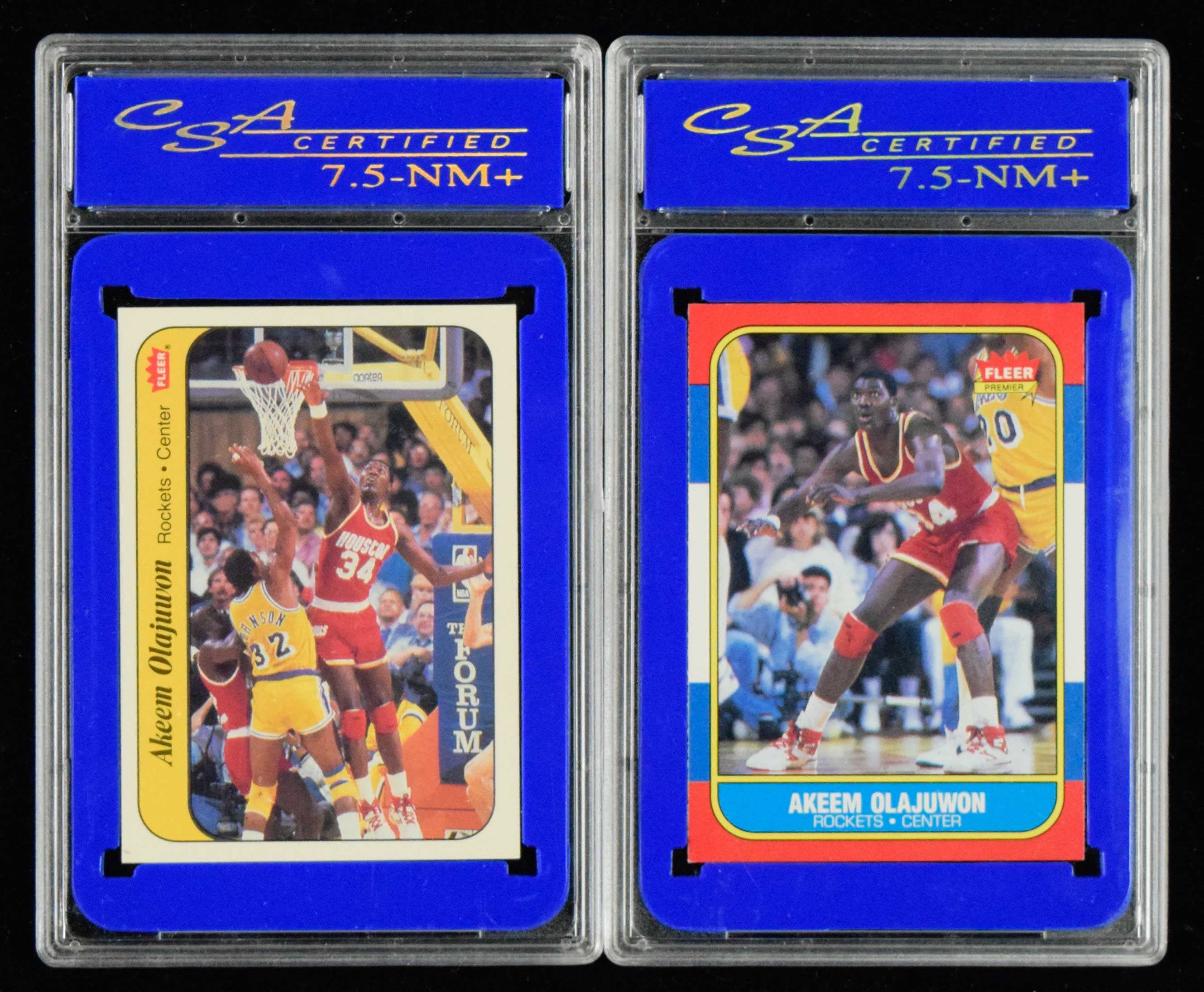 1986-87 Fleer #82 Hakeem Olajuwon Rookie plus Rookie Sticker (both "CSA 7.5 NM+) Both cards are in CSA grading holders: "7.5 NM+"