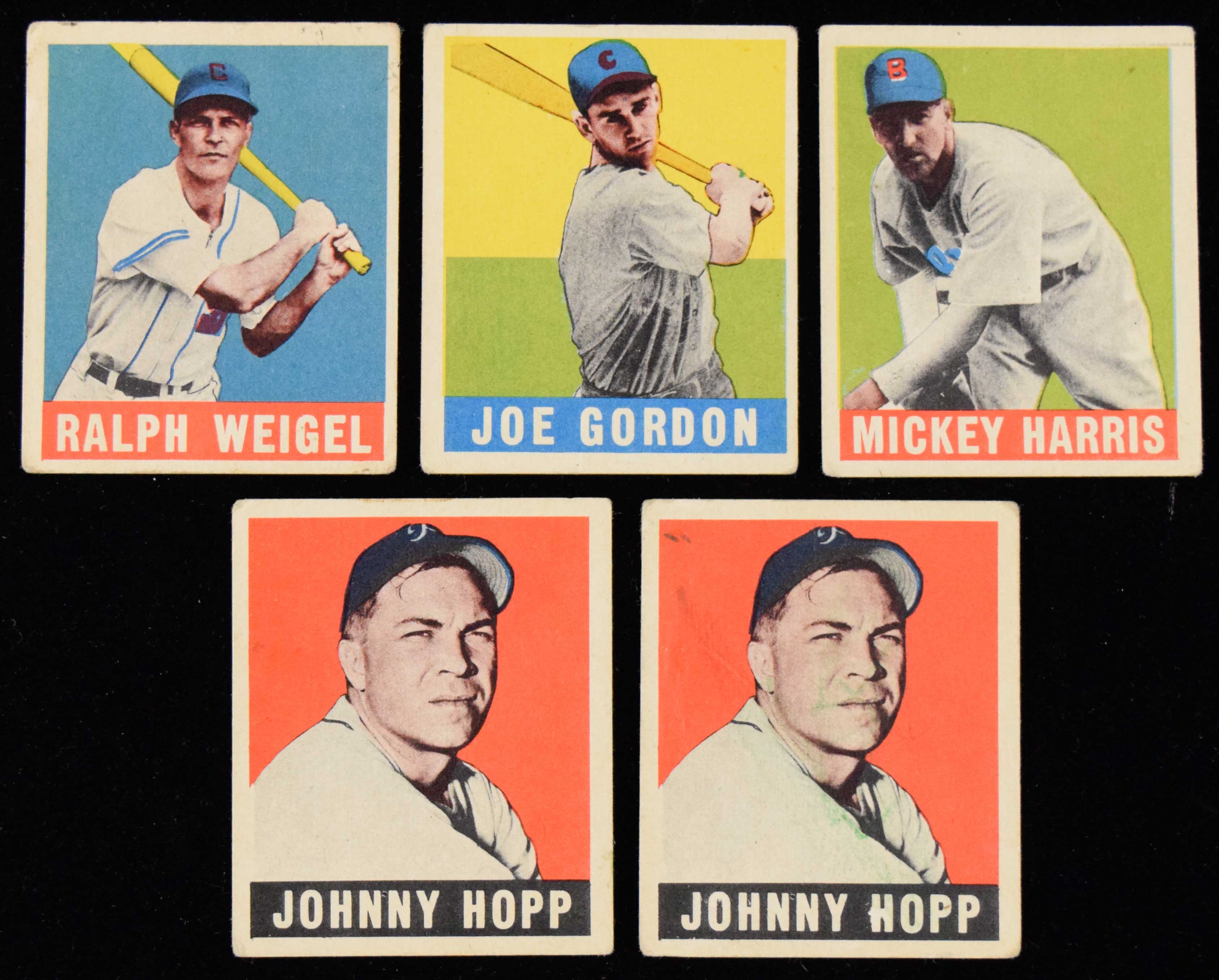 Description:Lot of (5) 1948 Leaf baseball cards (FR/GD-GD/VG) Includes #27 Harris (GD/VG), 86 Weigel (GD/VG), 117 Joe Gordon (GD), and (2) 139 Hopp (FR/GD): FR/GD-GD/VG