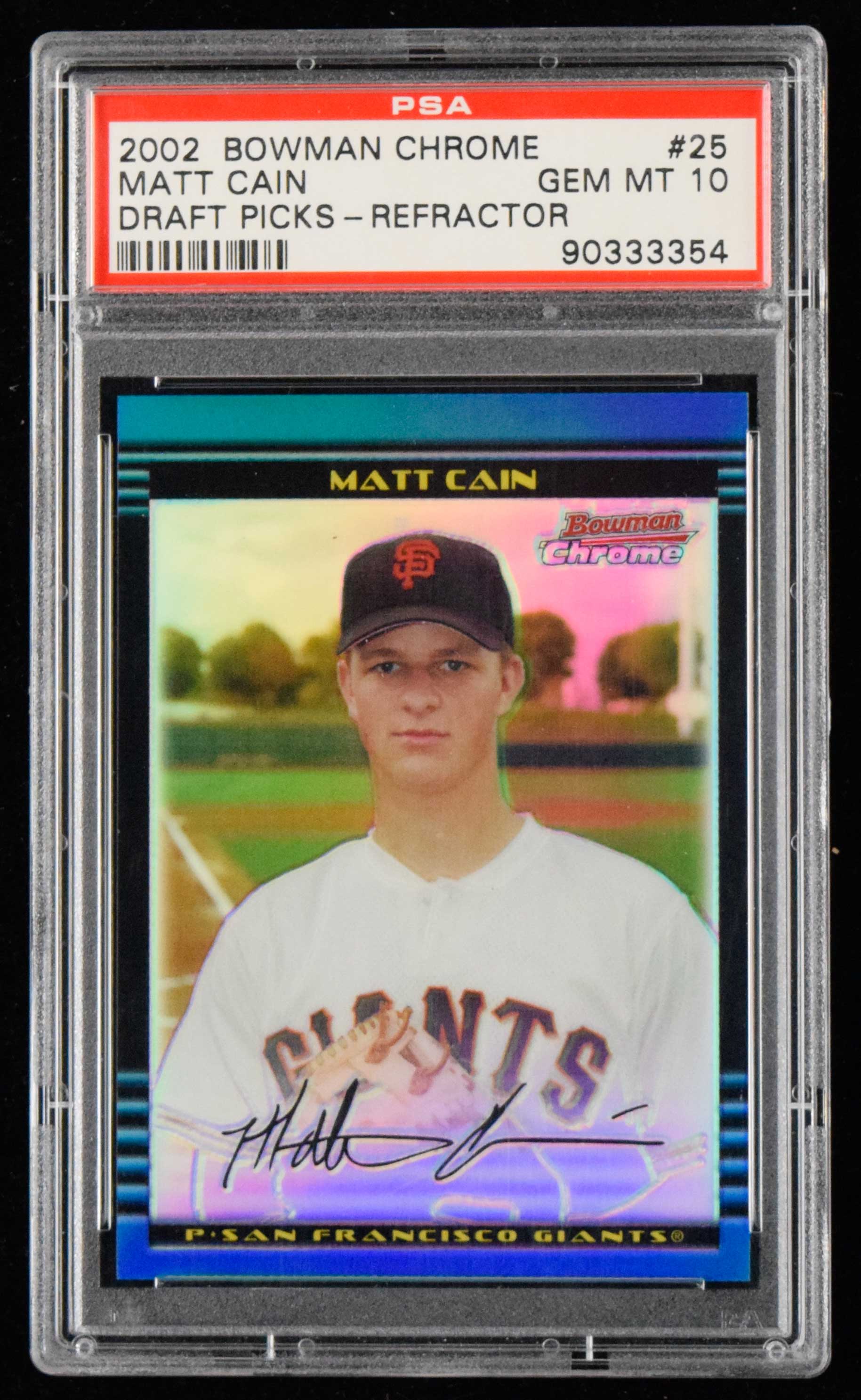 2002 Bowman Chrome #25 Matt Cain Refractor (299/300) (PSA Gem MT 10) Flawless card having no mentionable wear: PSA Gem MT 10