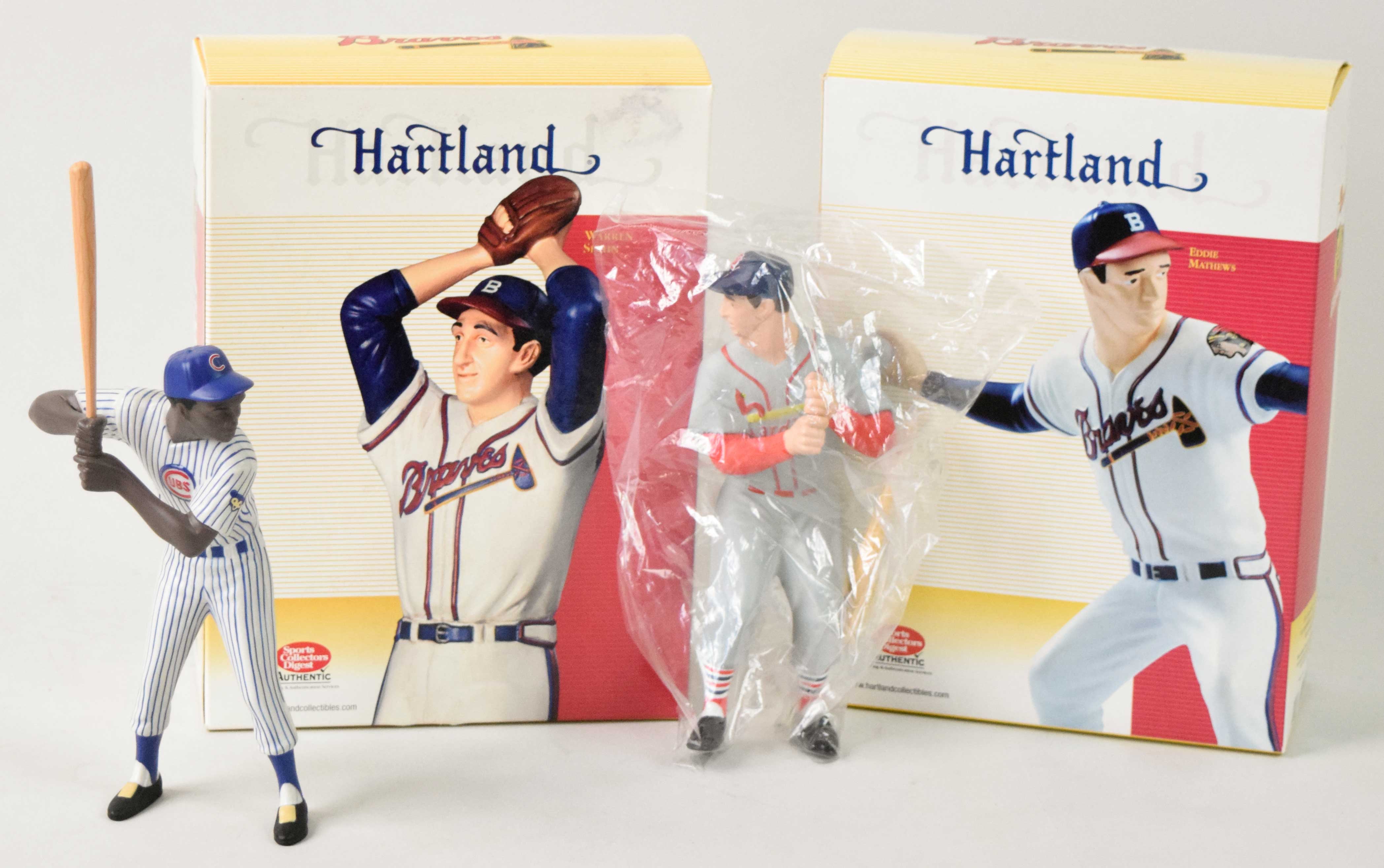 Description:Lot (10) Hartland Figures (EX/NM-NM) (6) of the Figures are in their original box while the last (4) are not. The (6) in their OB are all from 2002-2004 and includes Harmon Killebrew, Luis Aparicio, Warren Spahn, Eddie Mathews, Dick Groat, and Nellie Fox. Figures out of their OB includes Stan Musial, Ernie Banks, Duke Snider, and Johnny Bench. All seem to be from the new versions of these Hartland figures. All both in and out of their OB's seem to still be in good shape: EX/NM-NM