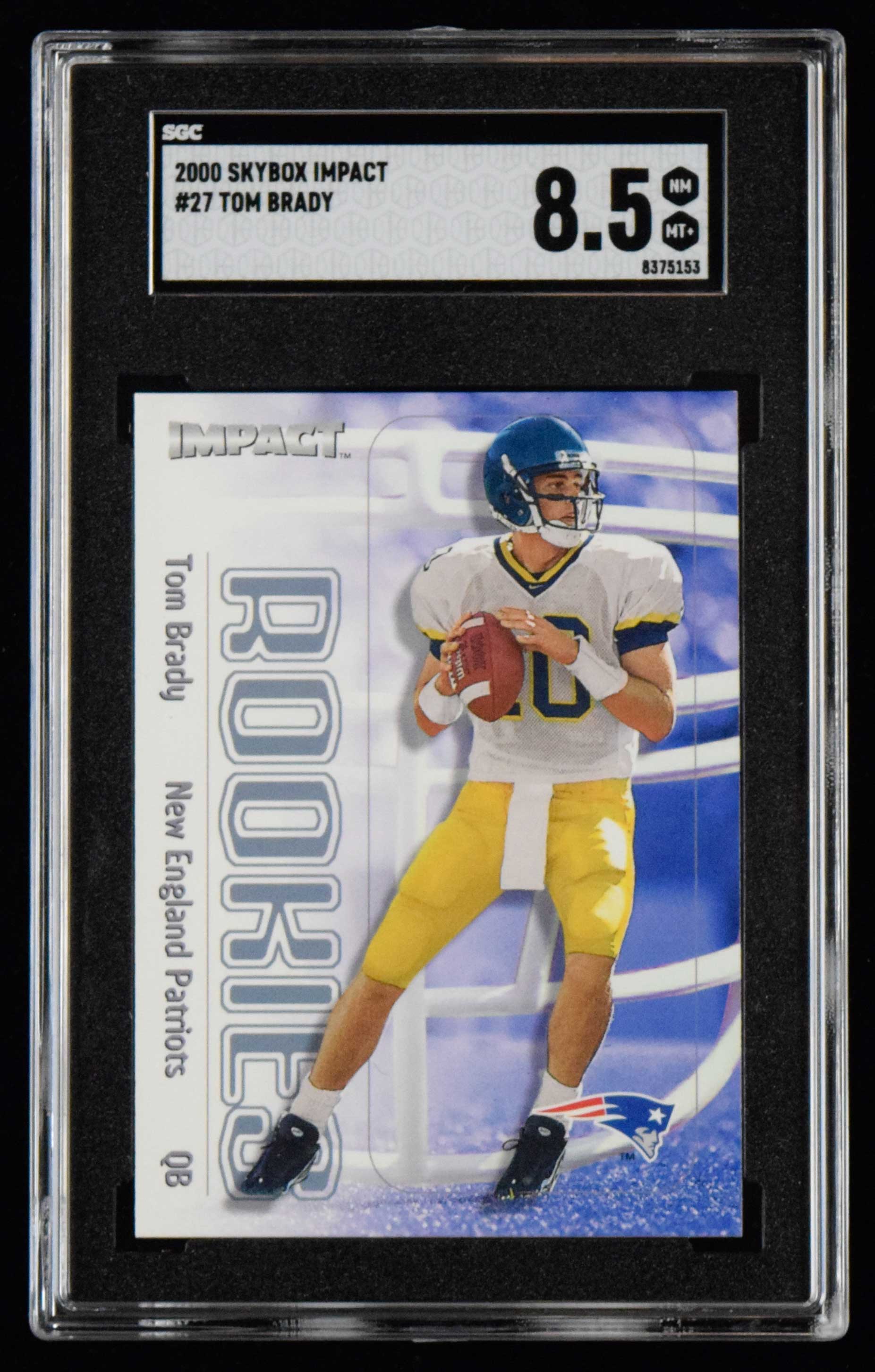 2000 Skybox Impact #27 Tom Brady Rookie (SGC 8.5 NM MT+) "Pack fresh" with little to no mentionable wear: SGC 8.5 NM MT+ ($400-$600)