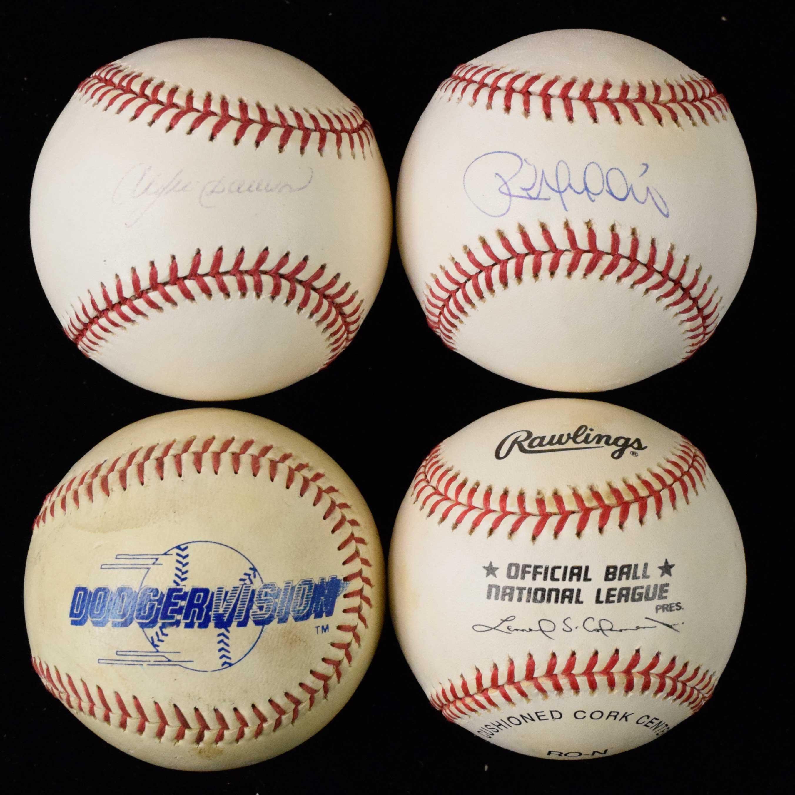 Description:Lot of 30+ Baseball, (3) signed rest either promotional giveaways or used in various leagues (VG-NM) Includes a baseball signed by Andre Dawson, another by Raúl Mondesí and one Phil Rizzuto (completely faded now). Also includes numerous promotioal piece balls from assorted teams and players, and official balls from the NCAA College World Series in 2005. Varrying conditions throughout the lot, but most grades EX overall: VG-NM