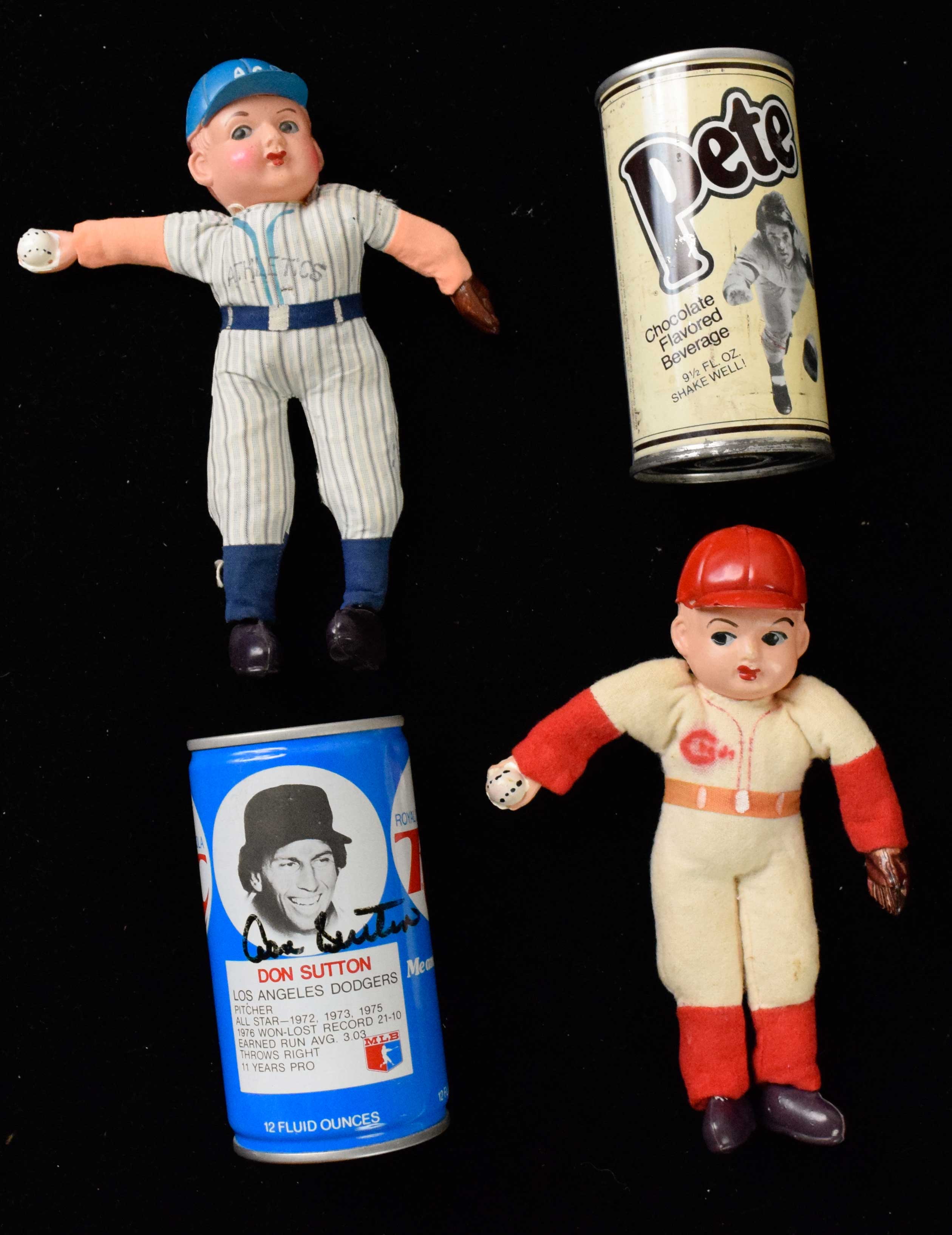 Description:Lot of assorted Baseball memorabilia (VG-EX/NM) Includes a signed Royal Crown Cola can by Don Sutton, Pete Rose Chocolate favored beverage (full and unopened), a Peanuts baseball themed soup thermos, Pat Burrell bobble head (broken on the legs), and Johnny Damon and Carlos Beltran Blue Rocks bobbleheads among a few other items. Varrying conditions throughout the lot, but most grades EX overall: VG-EX/NM