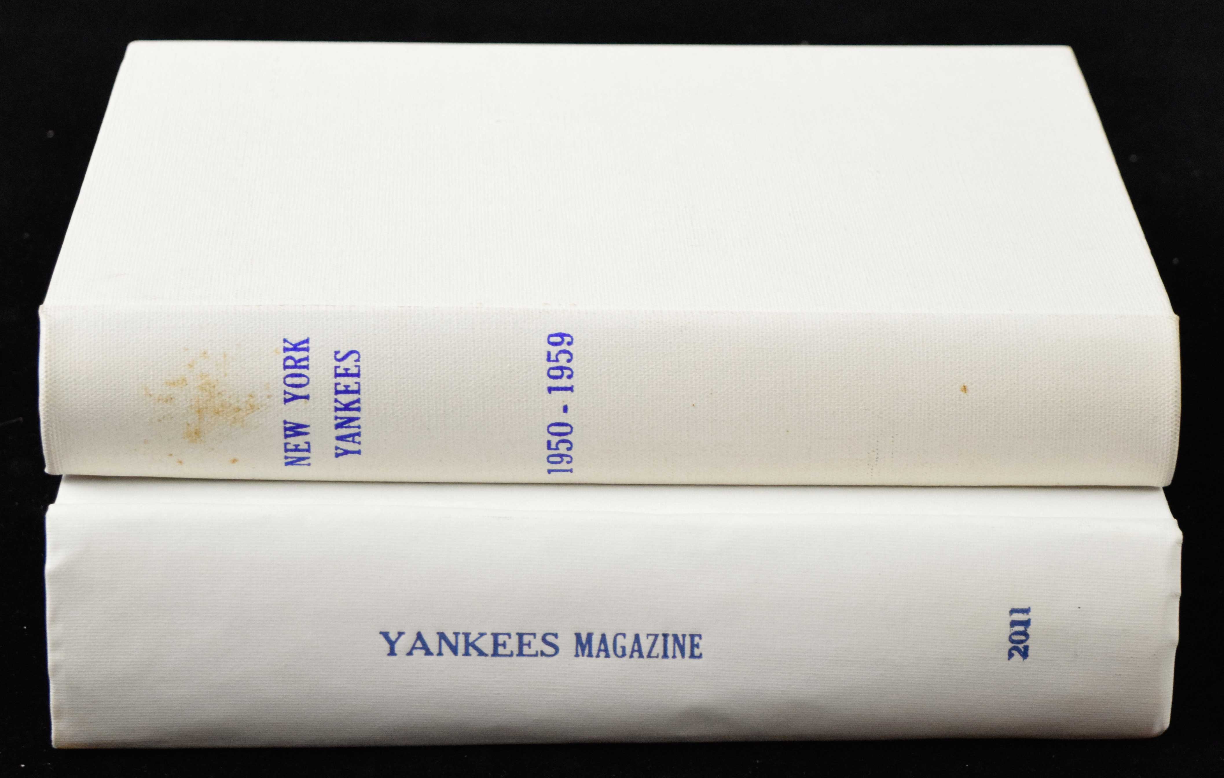 Description:Lot of New York Yankees Magazines 1950-2011 (EX-EX/NM) Includes Yankees magazines now in book covers. One set goes all the way through 1950-2004. Also includes another collection 1983-1994 and then 2008-2011. Finally includes a photo album with pictures from 1978-1984, "The Captains collection" DVD, "Mantle" DVD, "Yankeeography" Discs 1-12 DVD's and "Yankee Colors The Glory Years of the Mantle Era" book. Books show some wear and dirty spots on the outside but the contents on the inside seem to be in good shape: EX-EX/NM