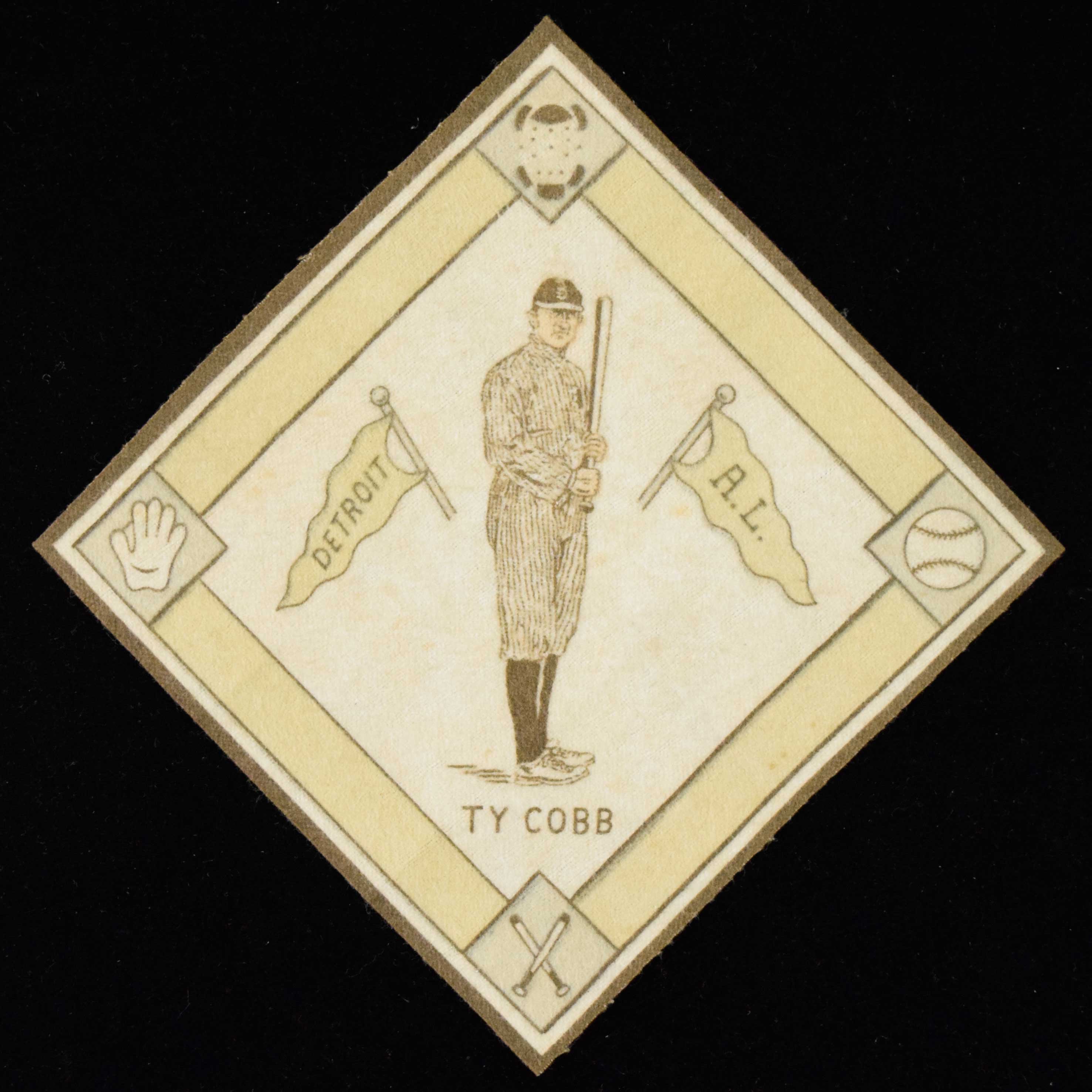 Description:Ty Cobb 1914 B18 Blanket (VG/EX-EX). White infield variation showing minimal wear, but colors on the front have faded in comparison to the back. Minor toning spots more visible on the back: VG/EX-EX