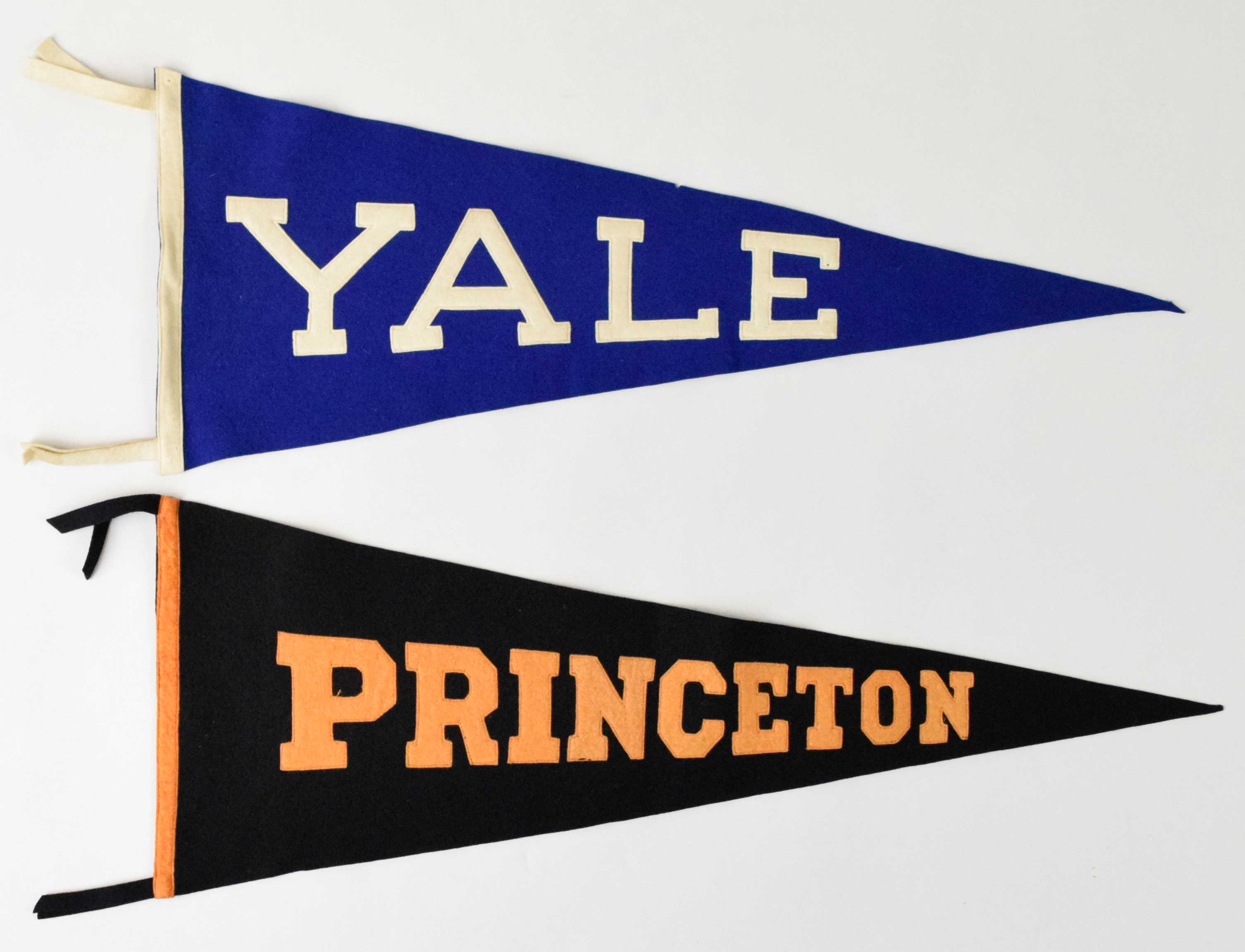 Yale and Princeton vintage pennants, c.1920s-30s (EX-NM). Includes 28.5" Yale pennant (EX-EX/MT), and 29.5" Princeton pennant (EX/MT-NM).