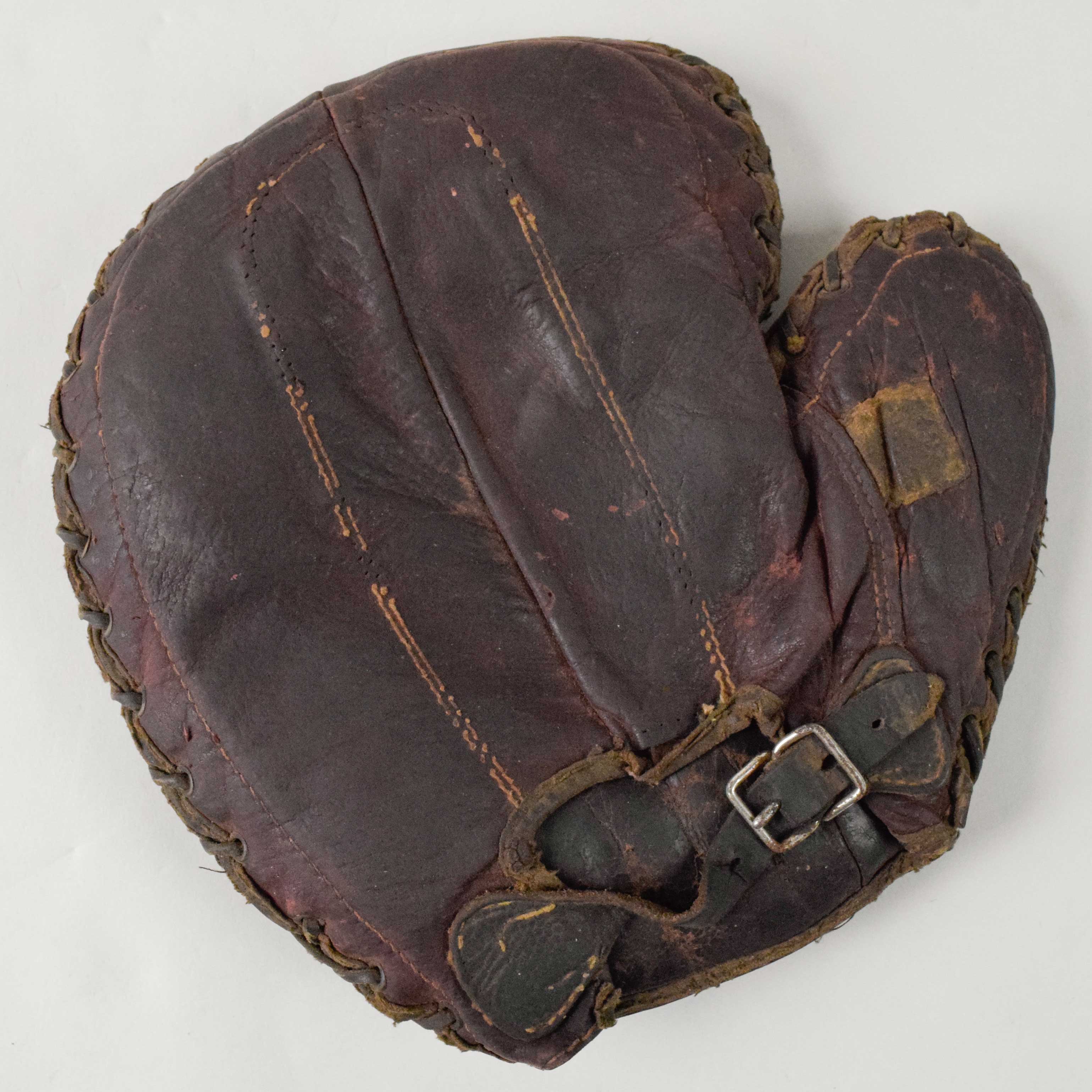 Description:Vintage baseman's mitt, c.early 1900s (GD/VG). Buckle back mitt with tag too heavily worn to see the maker. Original lacing is still intact around the edges, along with the wrist strap and buckle: G/VG