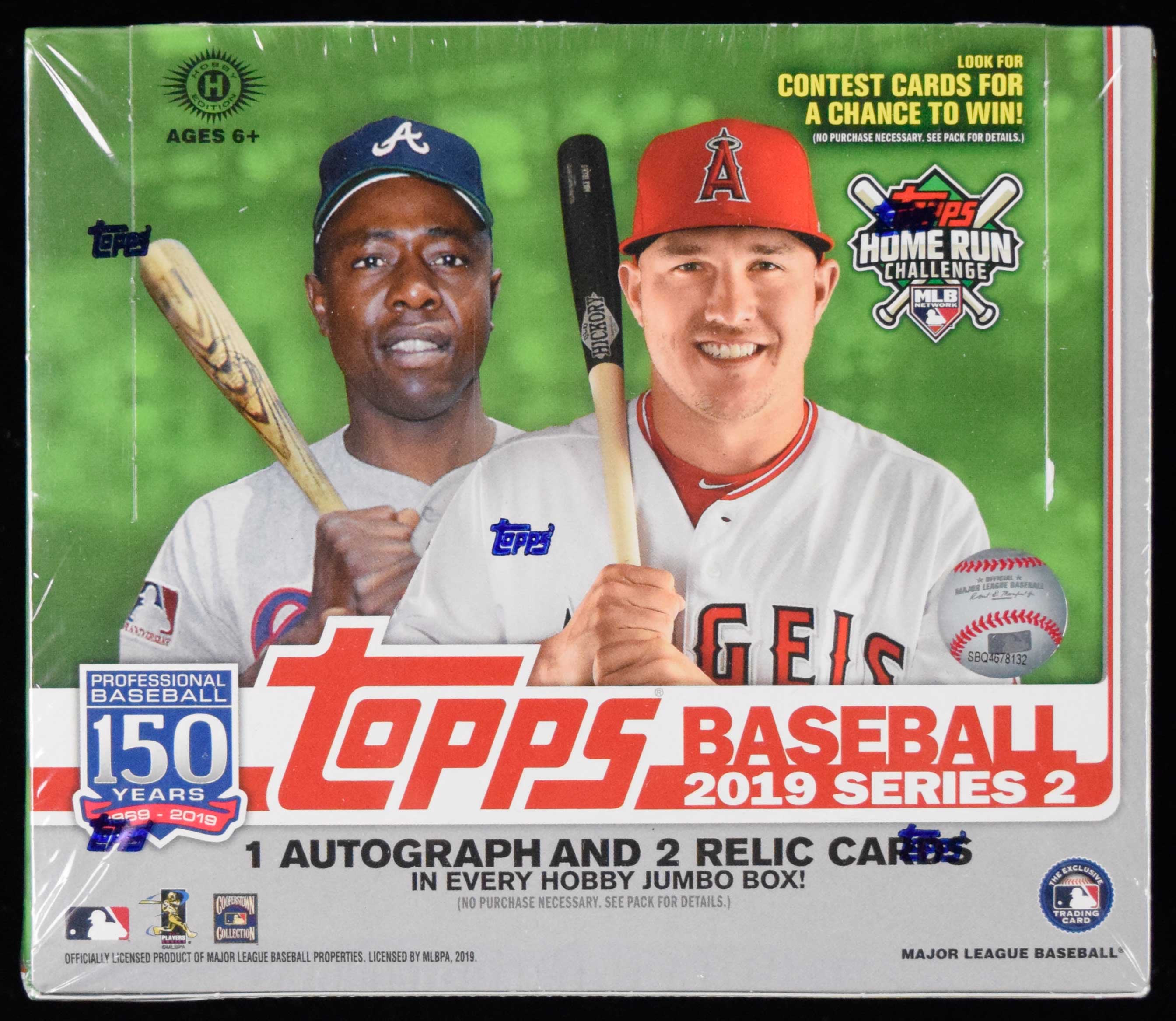 2019 Topps Baseball Series (2) Jumbo Hobby unopened box (NM) Desirable factory sealed box of unopened packs displays the slightest hint of light storage wear: NM ($500-$750)