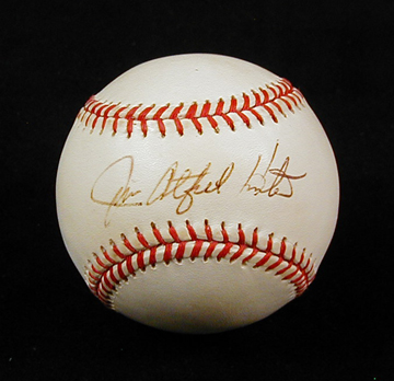 Jim Catfish Hunter single B.Brown AL ball. Includes Hunter show ticket: NM