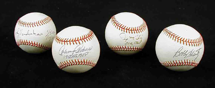 Lot of (4) single signed baseballs: Denny McLain (COA), Johnny Podres, Bobby Shantz, and Johnny Vandermeer: NM