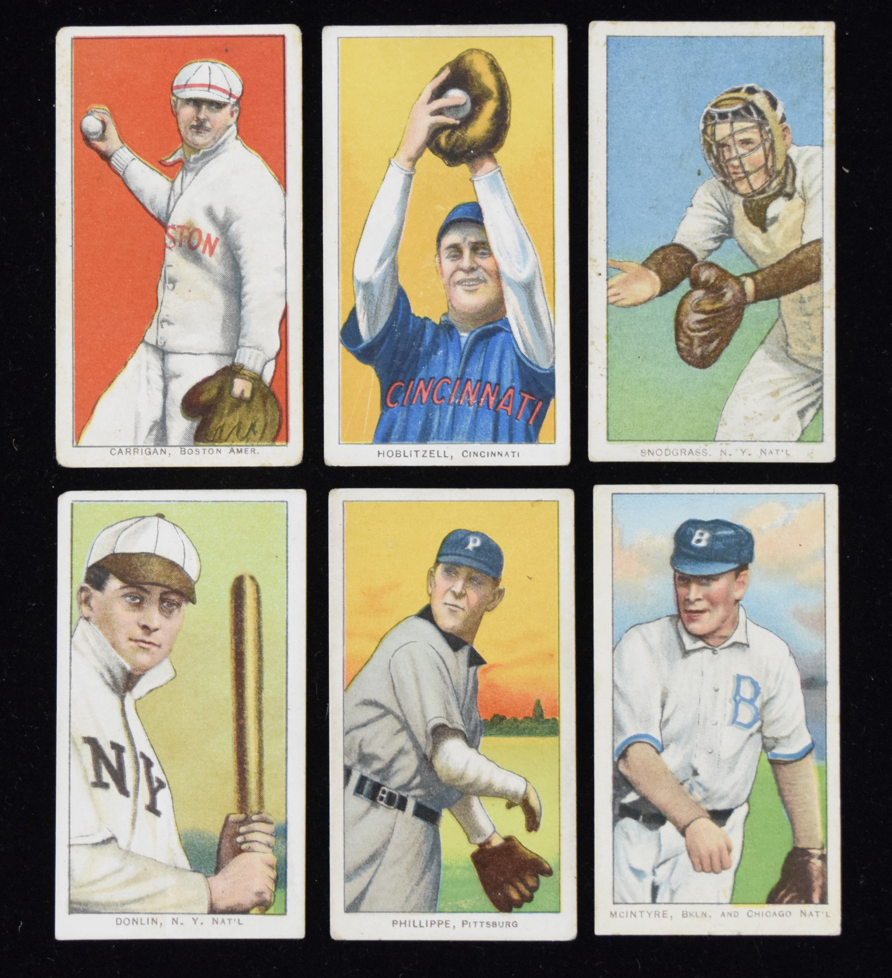 Description:Lot of (12) 1909-11 T206 baseball cards (Avg. VG) Nice lot with most cards around VG and there are a few lesser. Two (as noted) have pencil marks on back). Includes McIntyre, Murray, Snodgrass, Seymour, Donlin, Konetchy, Carrigan, Crandall, Krause, Hoblitzell, Phillippe (pencil marks), and Murphy (pencil marks): Avg. VG
