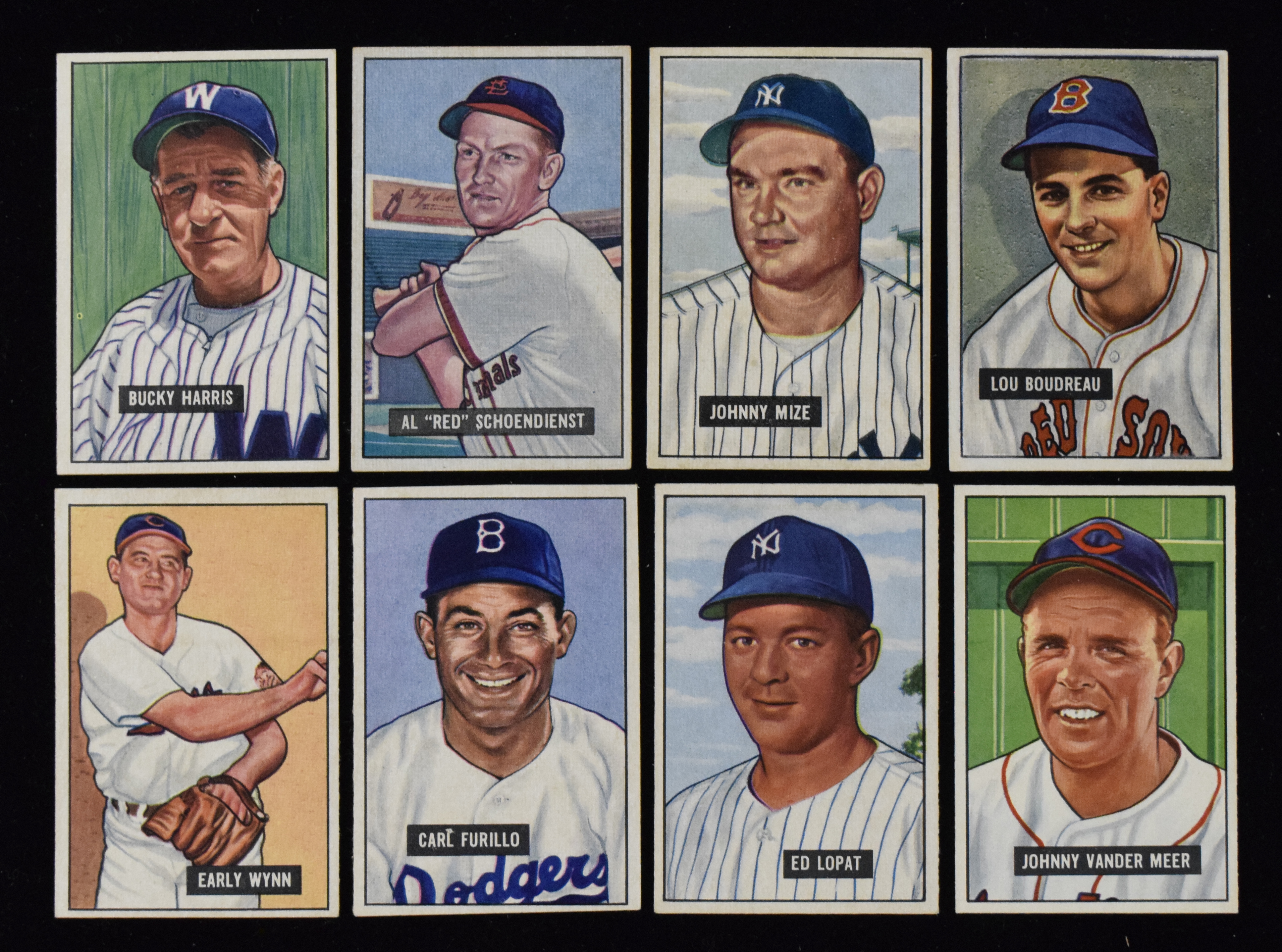 Description:1951 Bowman Baseball partial set (197 different) in strong EX-EX/MT average condition (VG-EX/MT) Solid start to a very sharp set with a total of (197) different cards, nearly all of which are EX or better on average. A small portion dip below and there are some nicer. Commons with some better names mixed in including Red Shoendienst, Johnny Mize, Lou Boudreau, Early Wynn, Carl Furillo, VIrgil Trucks, Ed Lopat, Johnny Vander Meer, Billy Cox, Chuck Dressen, and Bucky Harris: VG-EX/MT ($1,000-$2,000)
