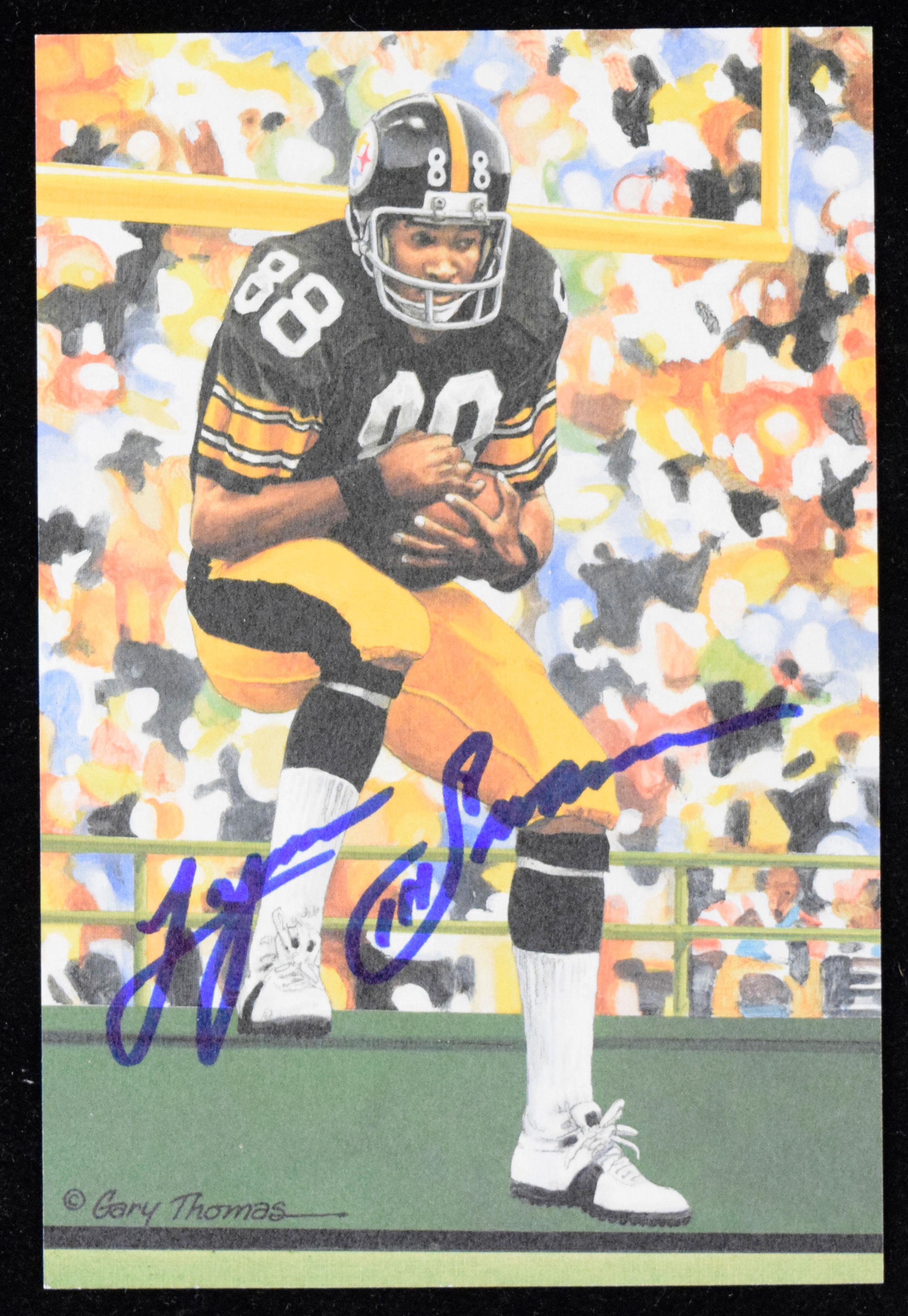 Lynn Swann signed 2001 Goal Line Art card (NM). Swann signed the card in blue marker. Signature rates 9/10 out of 10: NM