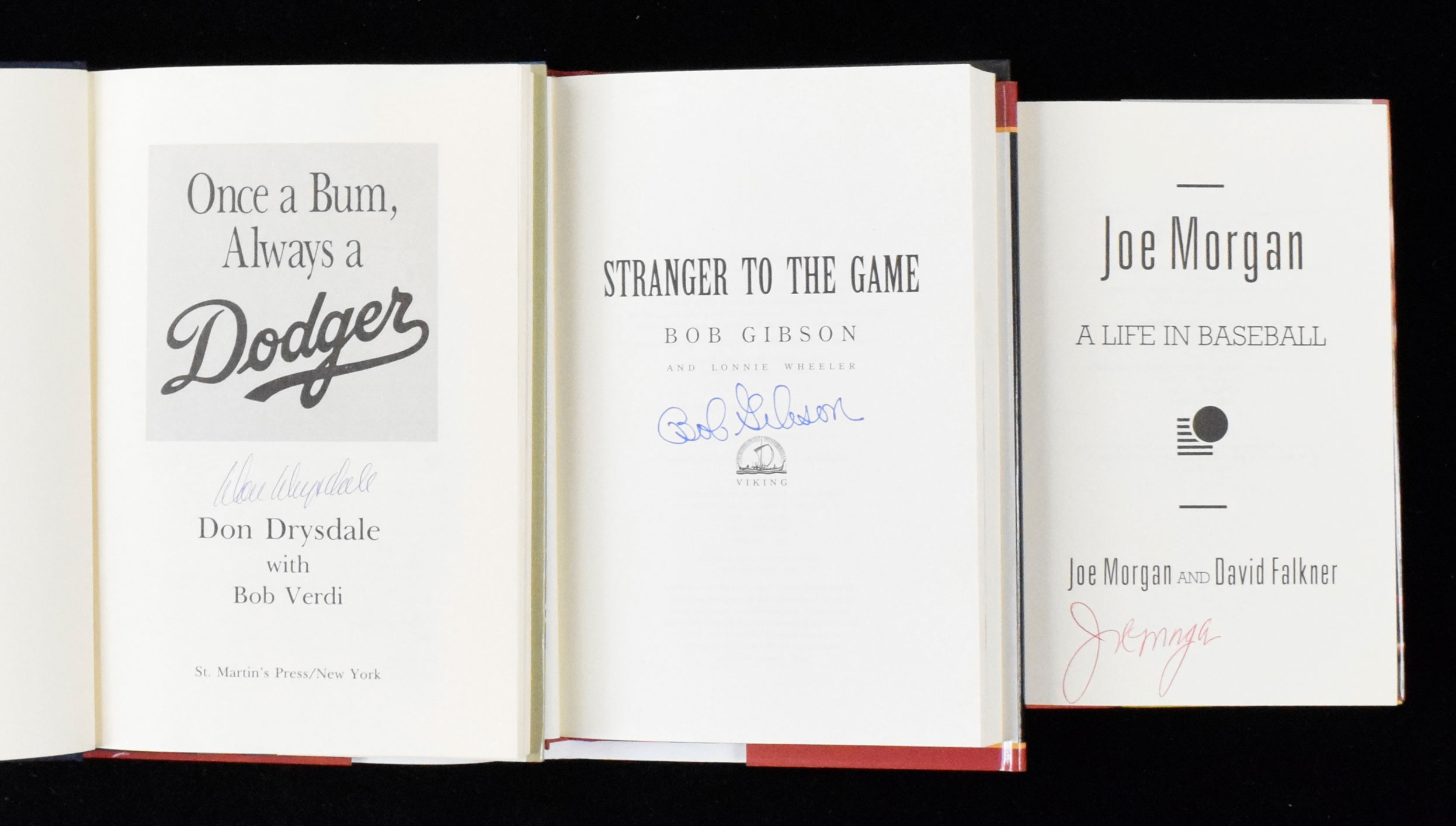 Description:Lot of (6) Baseball HOFers signed books (NM-NM/MT). Includes 1990 "Once A Bum, Always A Dodger" signed by Don Drysdale; 1993 "A Life in Baseball" signed by Joe Morgan; 1993 "Stranger To The Game" signed by Bob Gibson; 2006 "Clearing the Bases" signed by Mike Schmidt; 2012 "One Last Strike" signed by Tony LaRussa; and 2015 "Pedro" signed by Pedro Martinez. Signatures rate 8 to 10 out of 10: NM-NM/MT