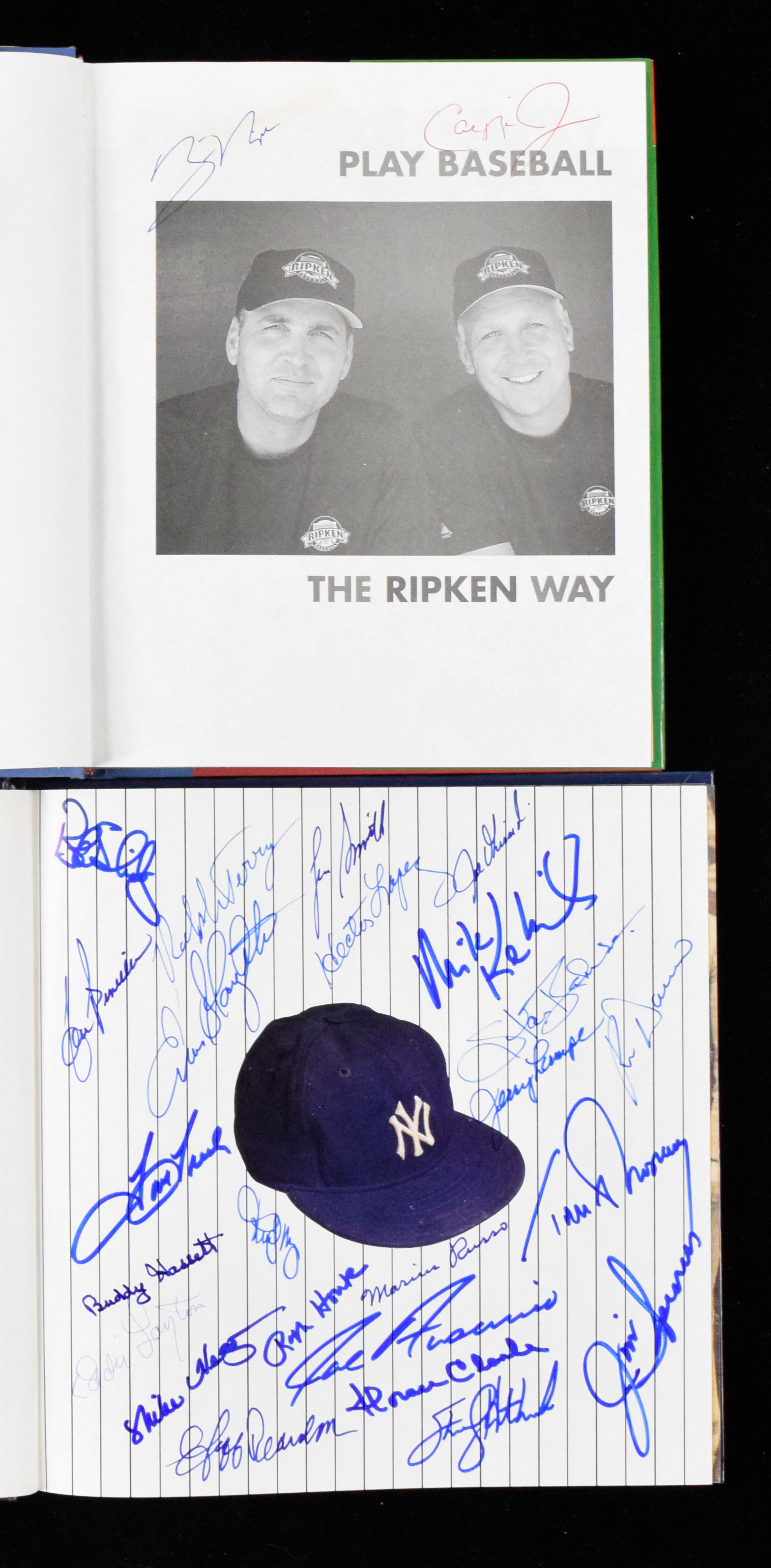 Description:Lot of (4) multi-signed baseball books (NM-NM/MT). Includes 1992 "The Bronx Bombers" signed by (24): Enos Slaughter, Lee Smith, Ralph Houk, Joe Girardi, Tom Tresh, Lou Piniella, Stan Bahnsen, Buddy Hassett, Mike Hegan, Ralph Terry, Jerry Lumpe, Jim Spencer, Hector Lopez, Horace Clarke, Marius Russo, Jeff Reardon, Sterling Hitchcock, Mike Kekich, Bob Shirley, Tom Shopay, Rudy May, Ron Davis, Joe Ausanio, and Eddie Layton; 1995 "The Baltimore Orioles" dual-signed by Scott McGregor and Al Bumbry; 2001 "The New York Mets Encyclopedia" signed by (13): Rusty Staub, Jimmy Piersall, Jerry Koosman, Frank Tanana, Dave Kingman, Edgardo Alfonzo, John Stearns, Tommy Davis, Jesus Alou, Felix Mantilla, Damion Easley, Duaner Sanchez, and Jason Phillips; 2004 "Play Baseball The Ripken Way" dual-signed by Cal Ripken Jr and Bill Ripken. Signatures rate 7 to 10 (avg 8/9) out of 10: NM-NM/MT