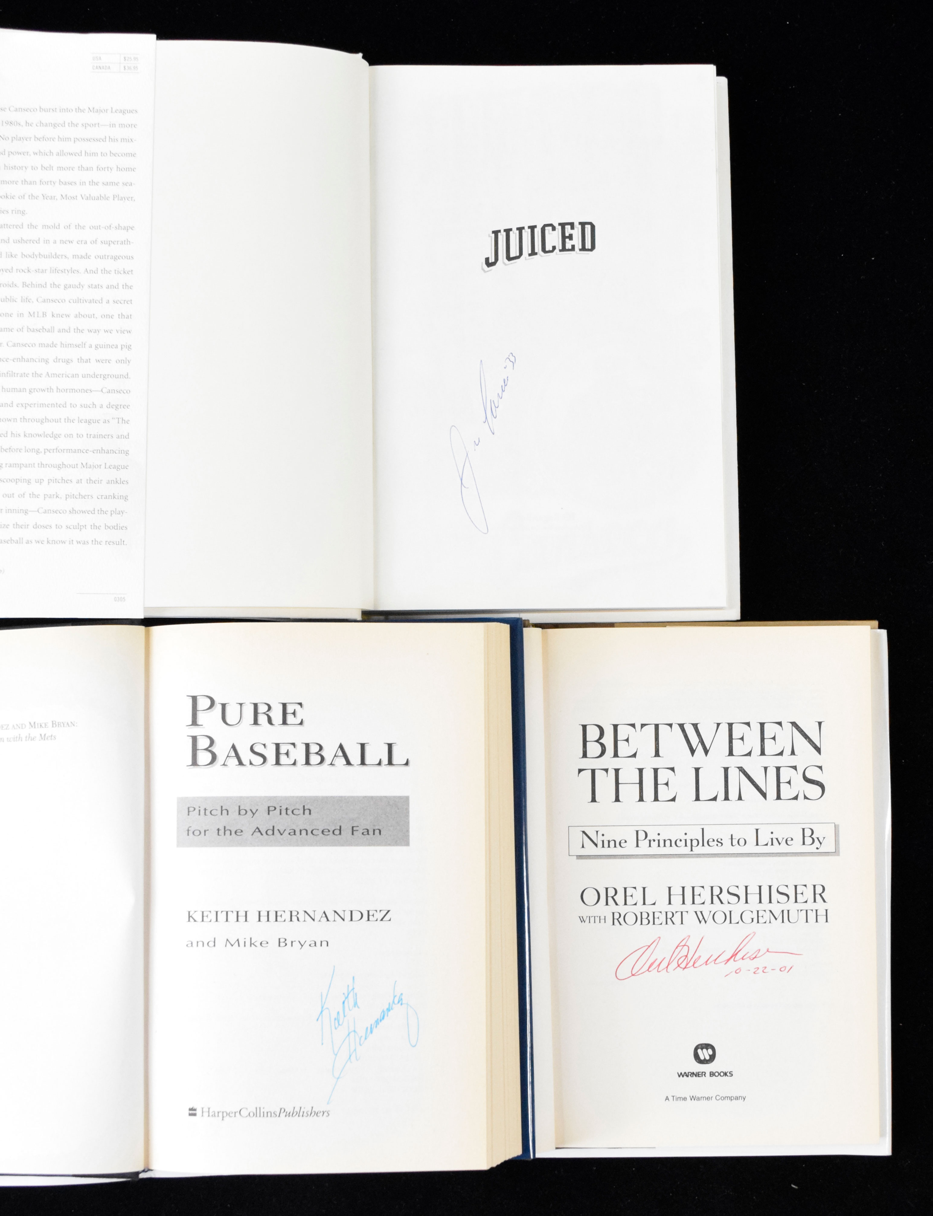 Description:Lot of (12) signed baseball books (NM-NM/MT overall). Includes 1994 "Pure Baseball" signed by Keith Hernandez; 2000 "Red Sox Century" signed by Gary Peters; 2001 "Between The Lines" signed by Orel Hershiser; 2002 "Amazin'" signed by John Stearns; 2003 "Tales from the Braves Mound" signed by Leo Mazzone; 2003 "The Teammates" signed by David Halberstam; 2005 "Juiced" signed by Jose Canseco; 2005 "Greats of the Game" signed by authors Ray Robinson and Christopher Jennison; 2010 "Few And Chosen: Defining Tigers Greatness Across the Eras" signed by Lance Parrish; 2012 "Few And Chosen: Defining Phillies Greatness Across the Eras" signed by Gary Matthews with "NL ROY 1973" inscription; 2012 "Designated Hebrew" signed by Ron Blomberg; and 2015 "More Than A Season" signed by Dayton Moore with "Go Royals" inscription. Signatures rate 8 to 10 out of 10: NM-NM/MT overall