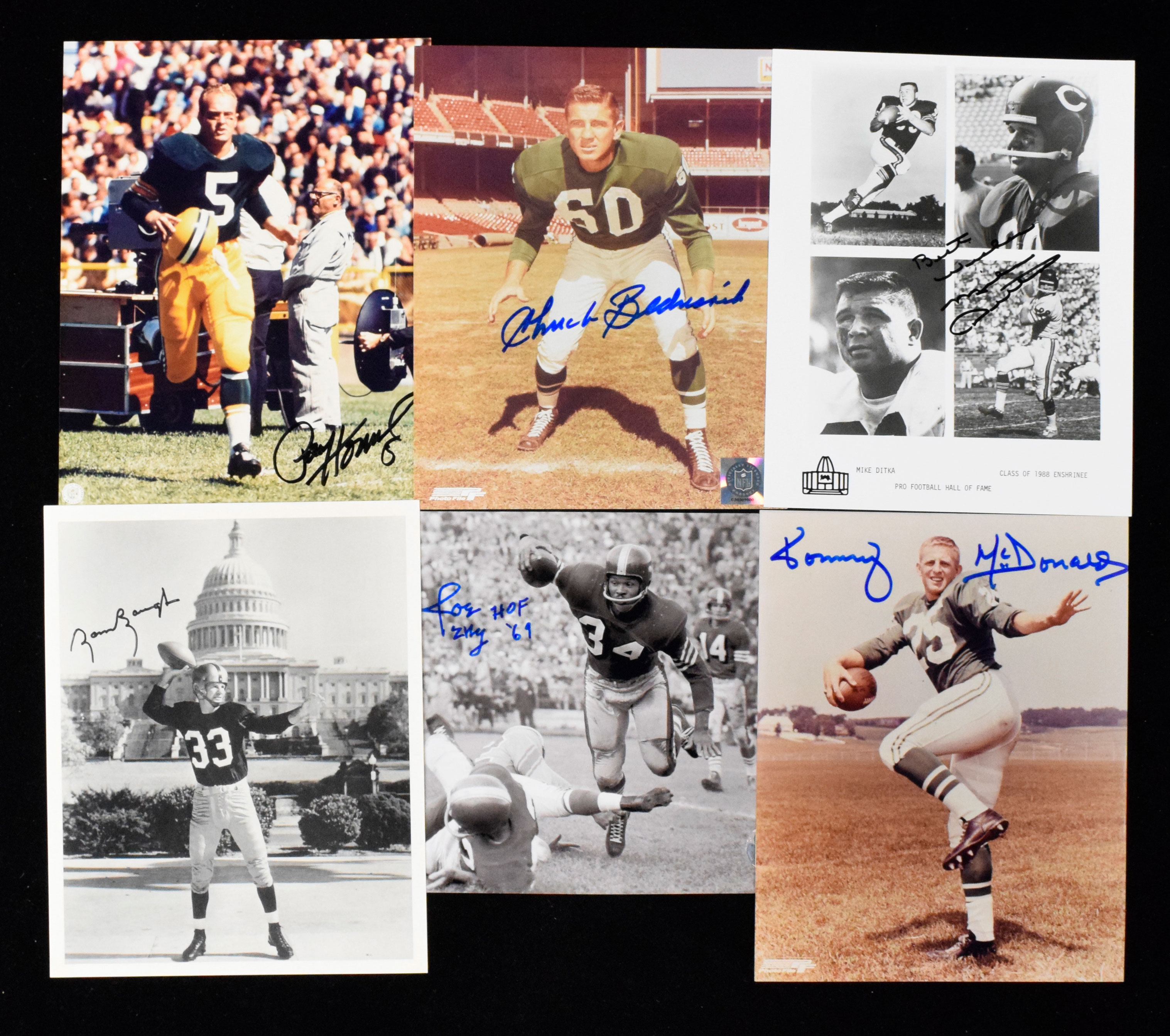 Description:Lot of (20) Football HOFers signed 8"x10" photos (NM overall). Includes (2) Chuck Bednarik (one with "this f…… game is OVER" "Sorry Frank" "HOF 67" inscriptions), Sam Baugh, Jim Ringo, Joe Perry with "HOF 69" inscription, Steve Van Buren, Bart Starr (personalized), Y.A. Tittle, Gino Marchetti (personalized), Tommy McDonald, Don Maynard, Bob St. Clair with "SF 49ers" "HOF 1990" inscription, Herb Adderley (personalized), Paul Hornung, Lenny Moore, Mike Ditka, Raymond Berry, Jackie Smith with "HOF 94" inscription, Ray Guy, and Bud Grant (personalized). Signatures rate 7 to 10 (avg 8/9) out of 10: NM overall