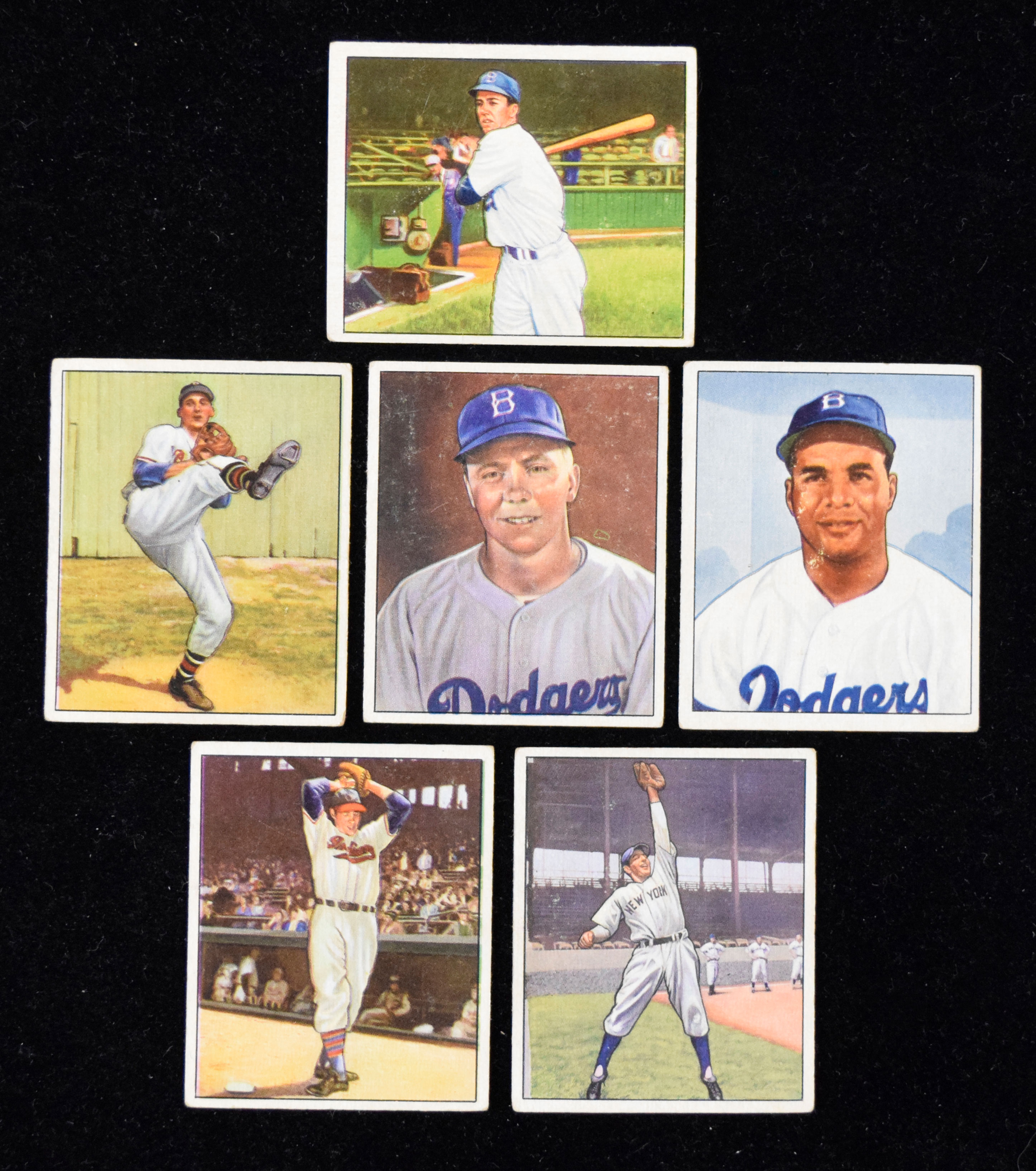 1950 Bowman Baseball near complete set (**247** of 250 cards) (Avg. VG) Keys: #1 Parnell (FR), 6 Feller (VG), 11 Rizzuto (VG/EX, small stain on back), 19 Spahn (VG), 21 Reese (VG), 23 Newcombe (GD/VG), 32 Roberts (VG/EX), 33 Kiner (GD), 39 Doby (VG), 75 Campanella (GD/VG-VG), 77 Snider (VG), 84 Ashburn (VG), and 112 Hodges (GD/VG). Missing #22 Robinson, 48 Berra, and 98 Williams. Balance is in average VG condition with GD to EX/MT-EX general range: Avg. VG ($1,500-$2,500)