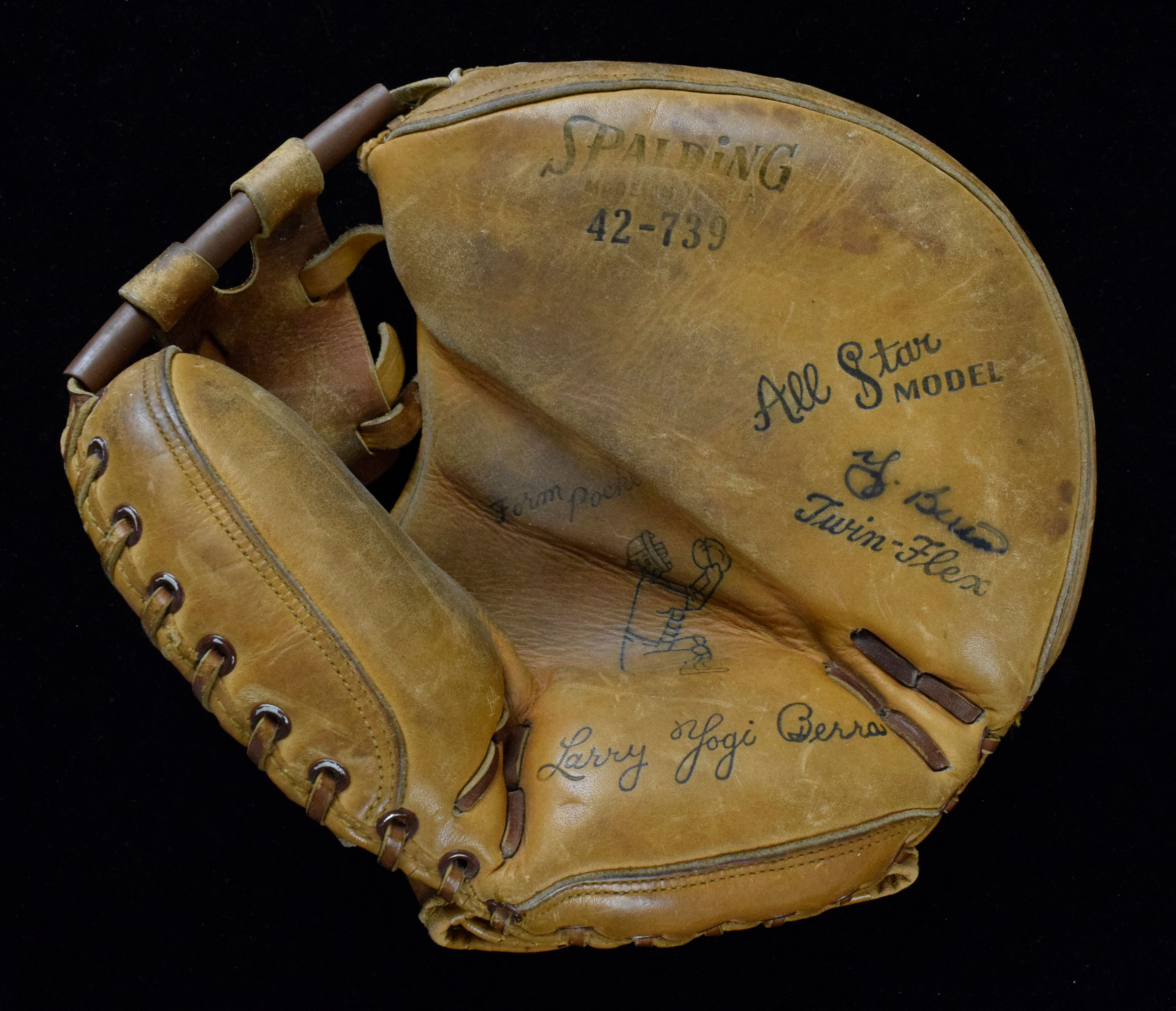 Description:Yogi Berra autographed vintage Spalding Berra model glove (JSA) (EX) Vintage Spalding All-Star Model 42-739 Yogi Berra signature model glove displays mild use/wear with nice and well defined markings. Signed "Yogi Berra" in marker rating 7 out of 10. Includes COA from JSA: EX