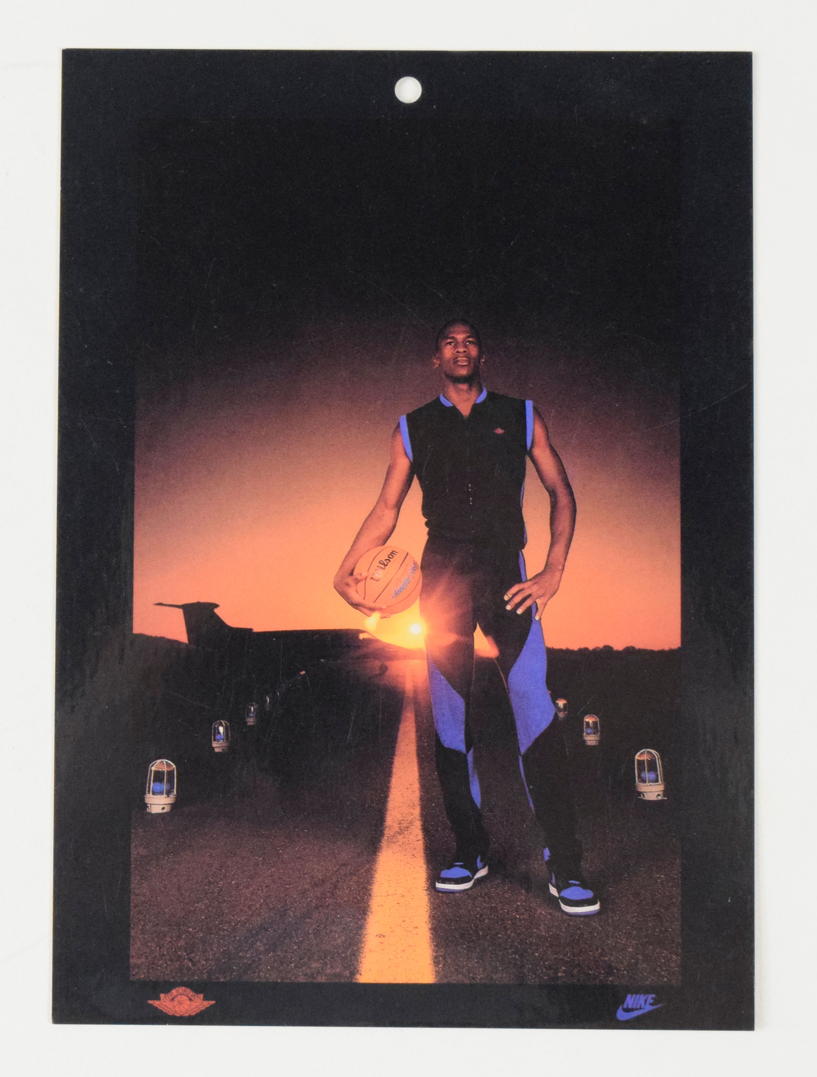 Description:1985 Nike Poster Cards #858 Michael Jordan - "Jordan Blue & Black" (EX) Strong EX condition with a slight ding to one corner and a few surface scratches: EX