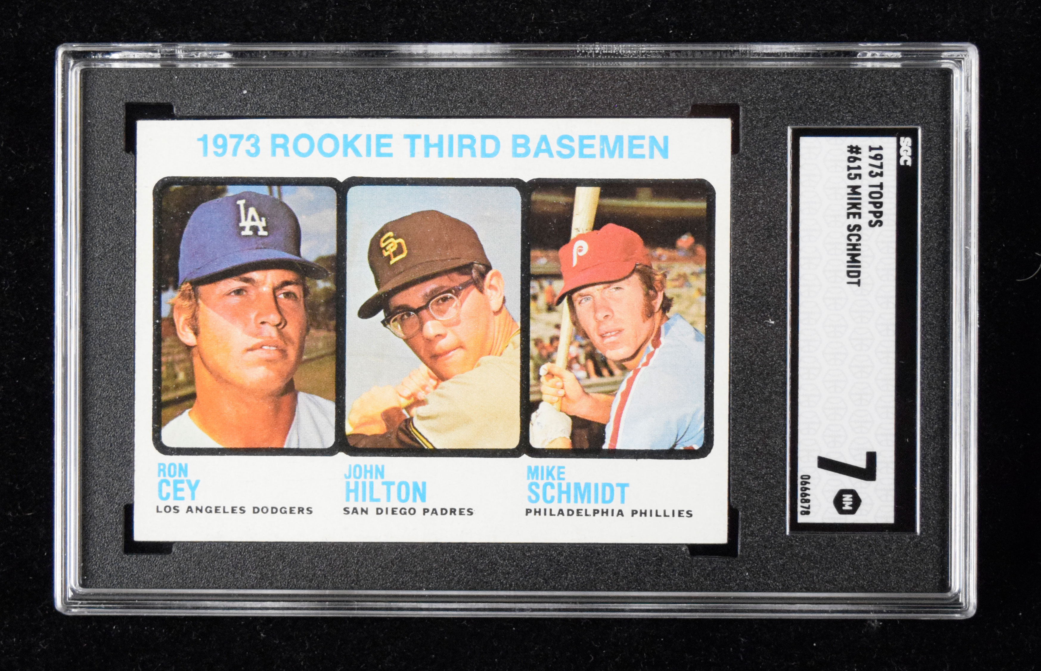 Description:1973 Topps #615 Mike Schmidt Rookie (SGC 7 NM) Exceptionally well centered relative to nearly all Schmidt Rookies that we see with little to no mentionable wear: SGC 7 NM