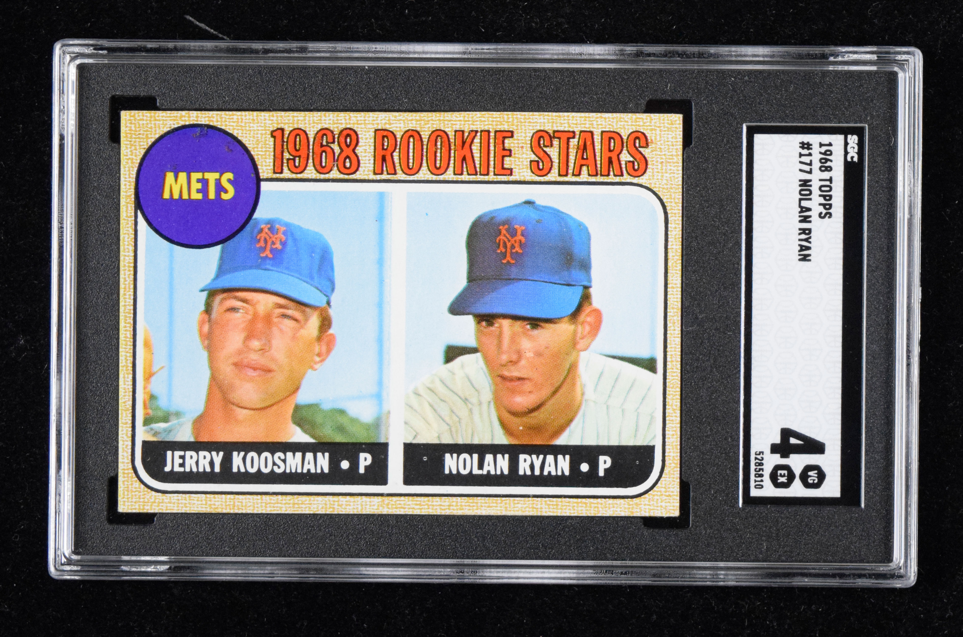 Description:1968 Topps #177 Nolan Ryan Rookie (SGC 4 VG EX) Key Rookie card is well centered with a few hairline wrinkles visible upon close inspection: SGC 4 VG EX ($500-$750)