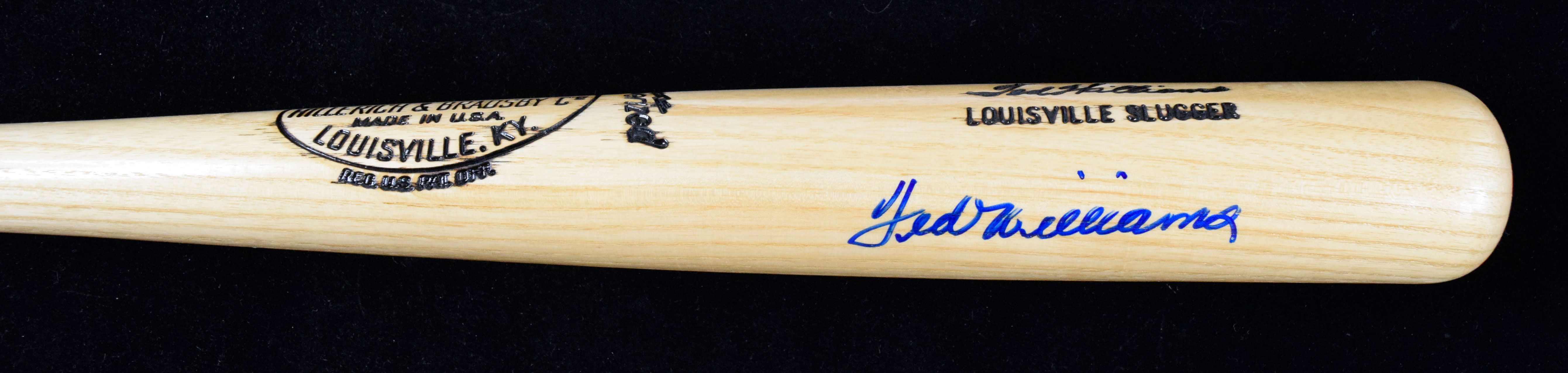 Description:Ted Williams autographed Louisville Slugger baseball bat (NM) Louisville Slugger model W166 bat done in similar style to that which he would have used has been signed in marker rating 8/9 out of 10: NM ($400-$600)