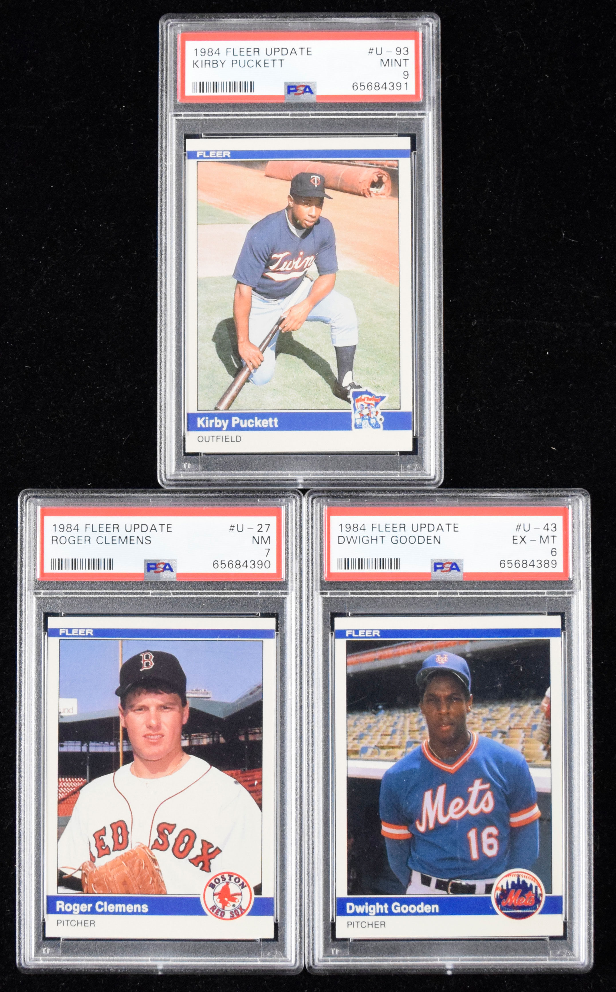 Description:1984 Fleer Updated complete set with PSA graded Puckett, Gooden, and Clemens Rookies (EX-MT) Complete set in average NM condition with EX-Mint general range. Keys have been graded: #27 Clemens (PSA NM 7), 43 Gooden (PSA EX-MT 6), and Puckett (PSA Mint 9): EX-MT ($400-$600)