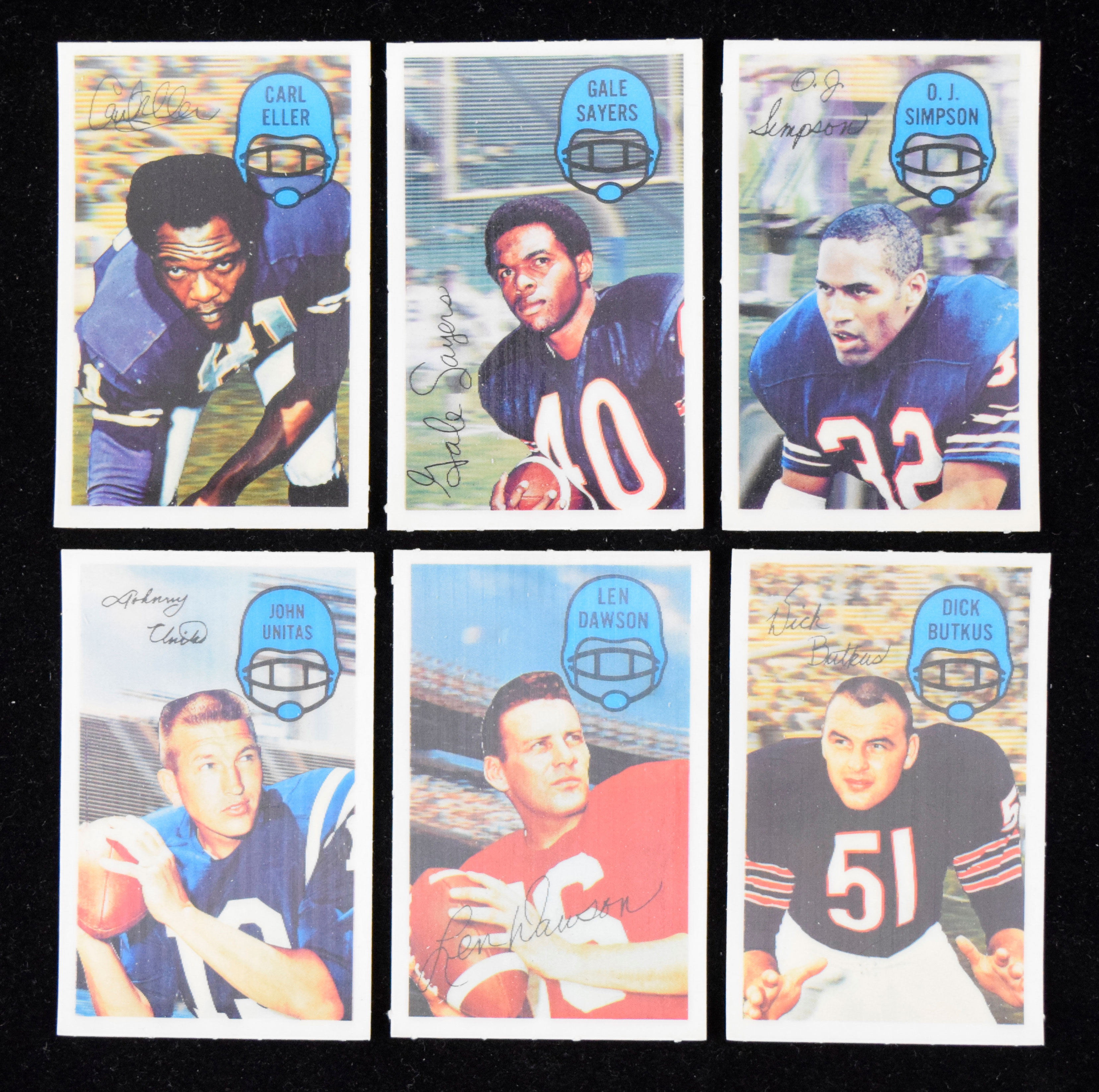 1970 Kellogg's Football card set (VG/EX-NM/MT). Key cards grade: #s 48 O.J. Simpson rookie (EX/MT), 51 Gale Sayers (EX/MT-NM), 55 Johnny Unitas (NM). Remainder appear to average EX/MT-NM overall. Range: VG/EX-NM/MT