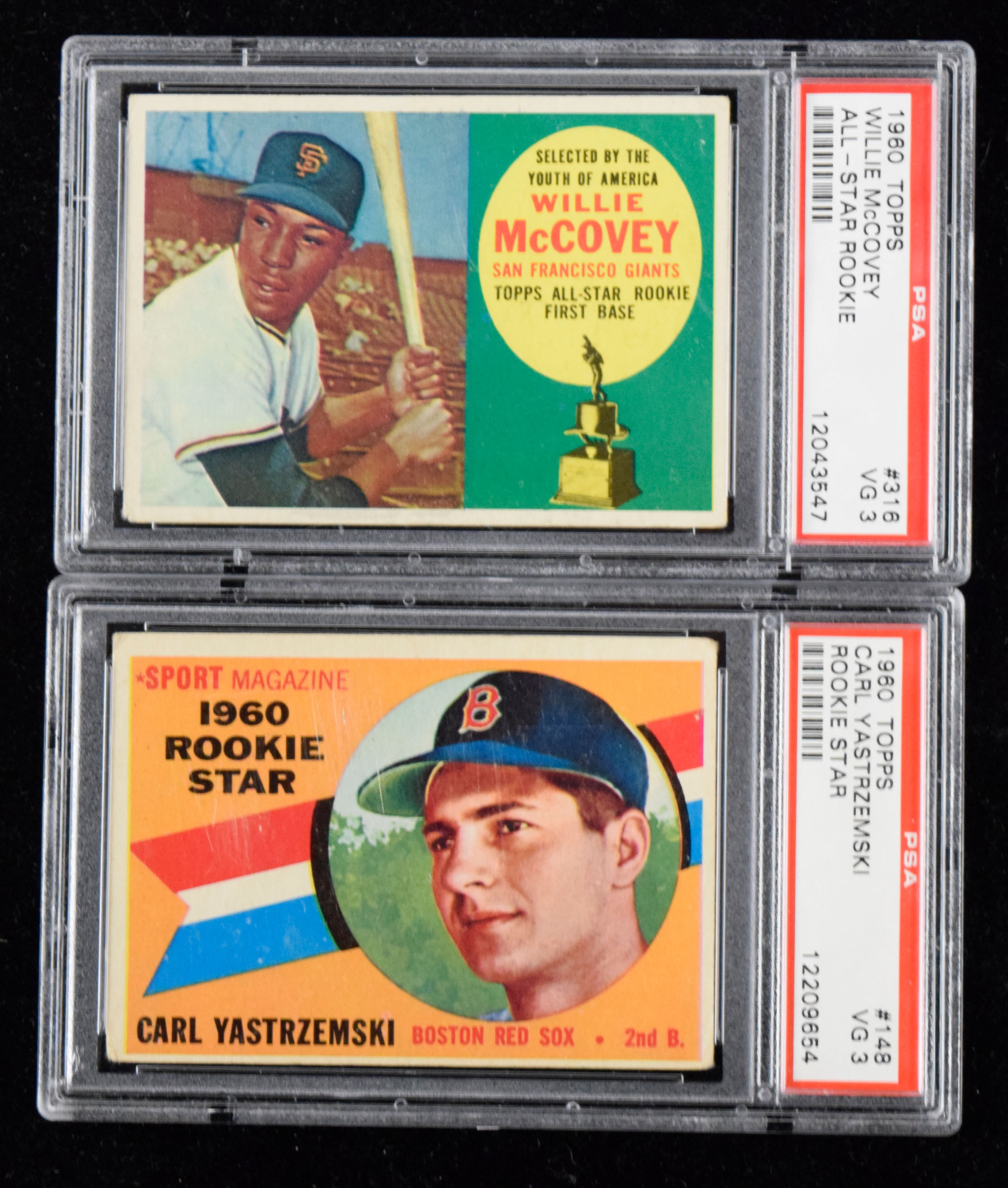 1960 Topps #s 148 Carl Yastrzemski and 316 Willie McCovey rookie cards both graded PSA 3 (VG).